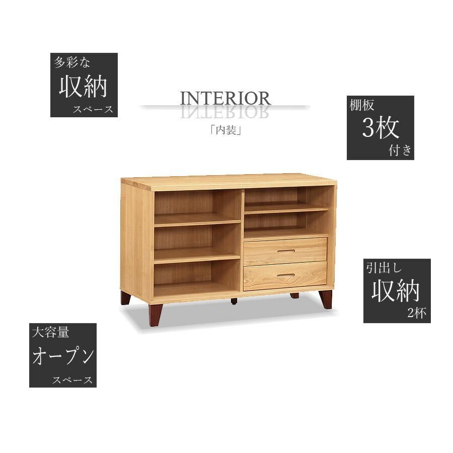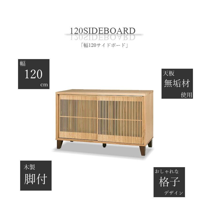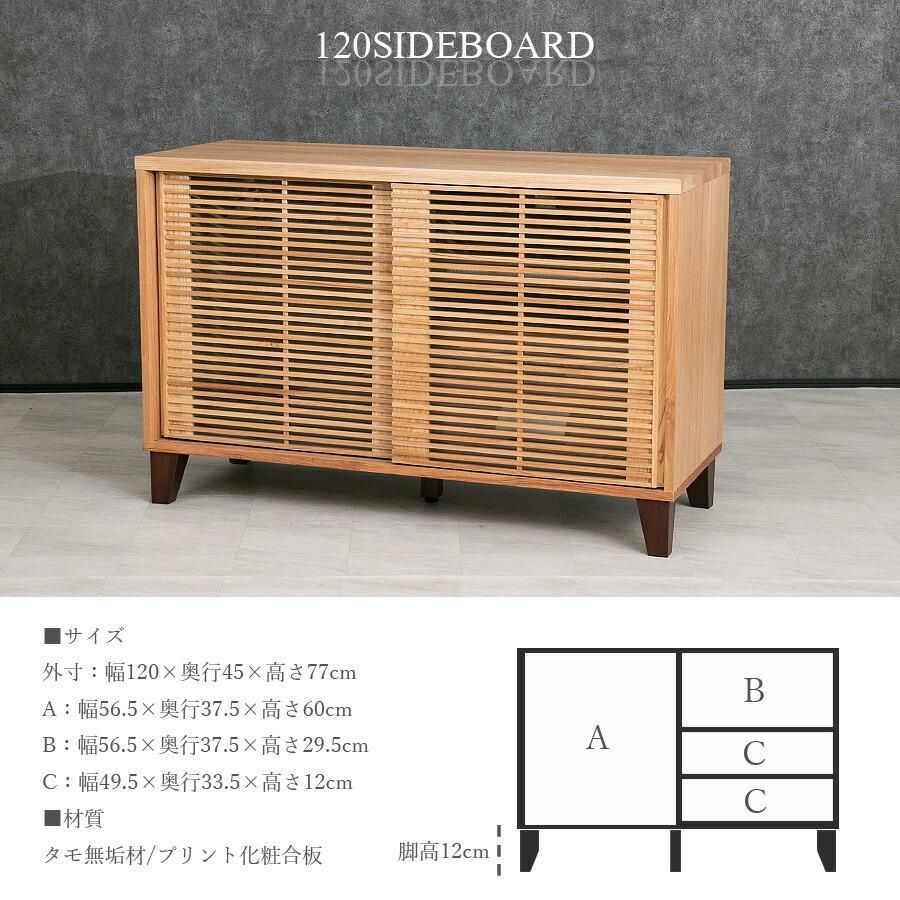 キャビネット サイドボード タモ 完成品 おしゃれ 北欧 格子 可動棚 木製 収納 脚付き 引き出し 2段 ナチュラル