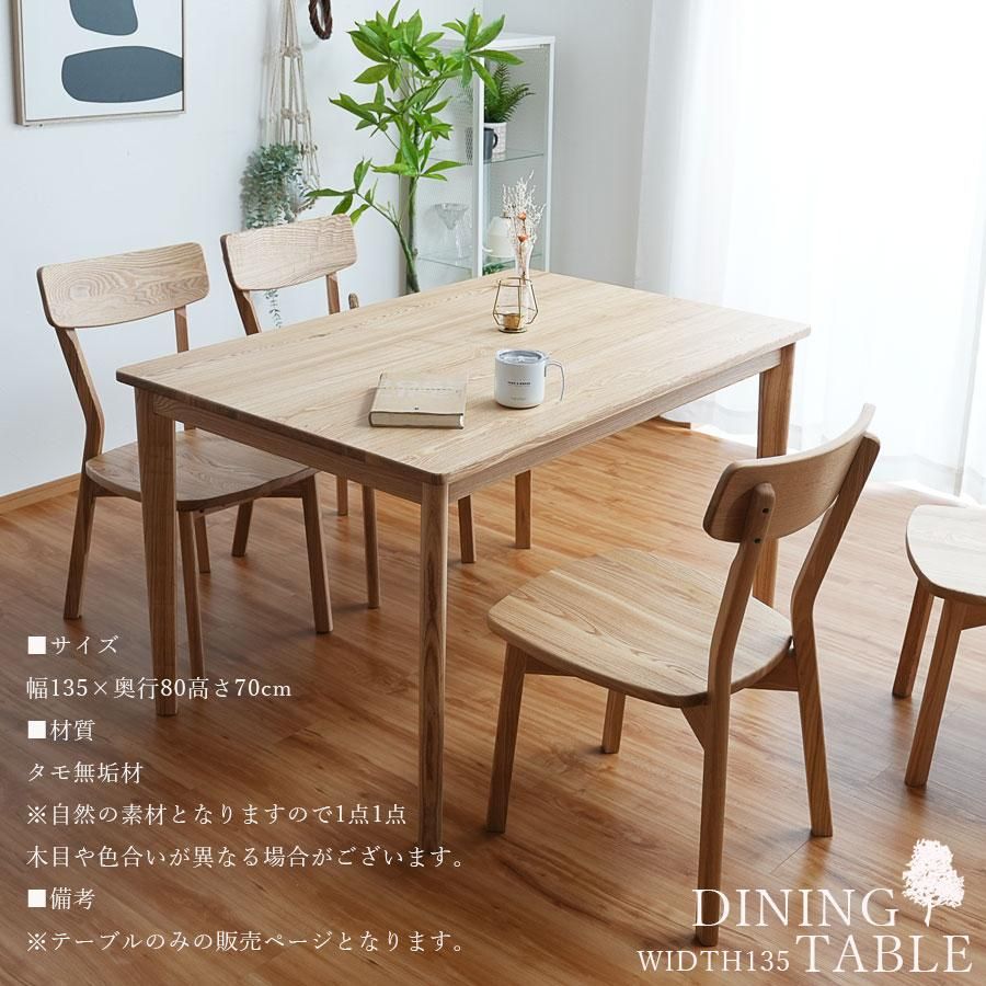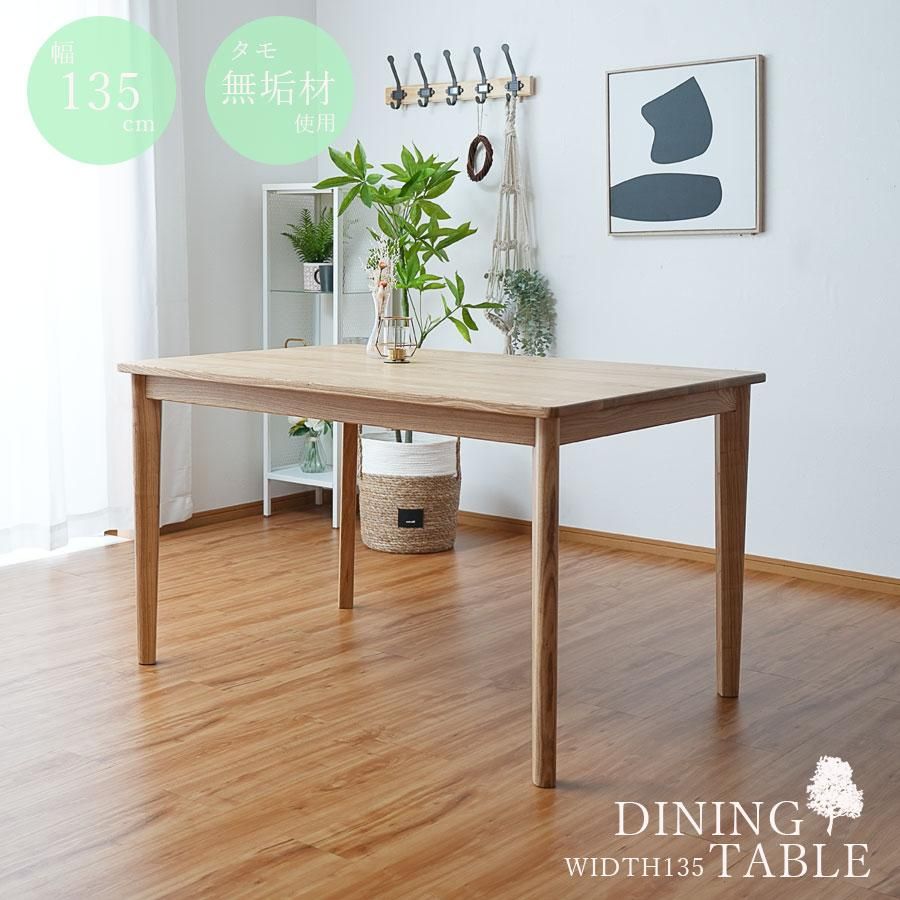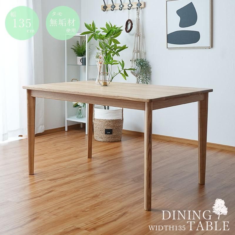 ダイニングテーブル 四角 テーブル 北欧 幅135 タモ 無垢 長方形 テーブル単品 おしゃれ モダン ナチュラル 食卓テーブル 木製