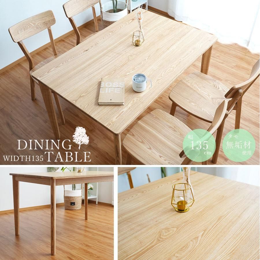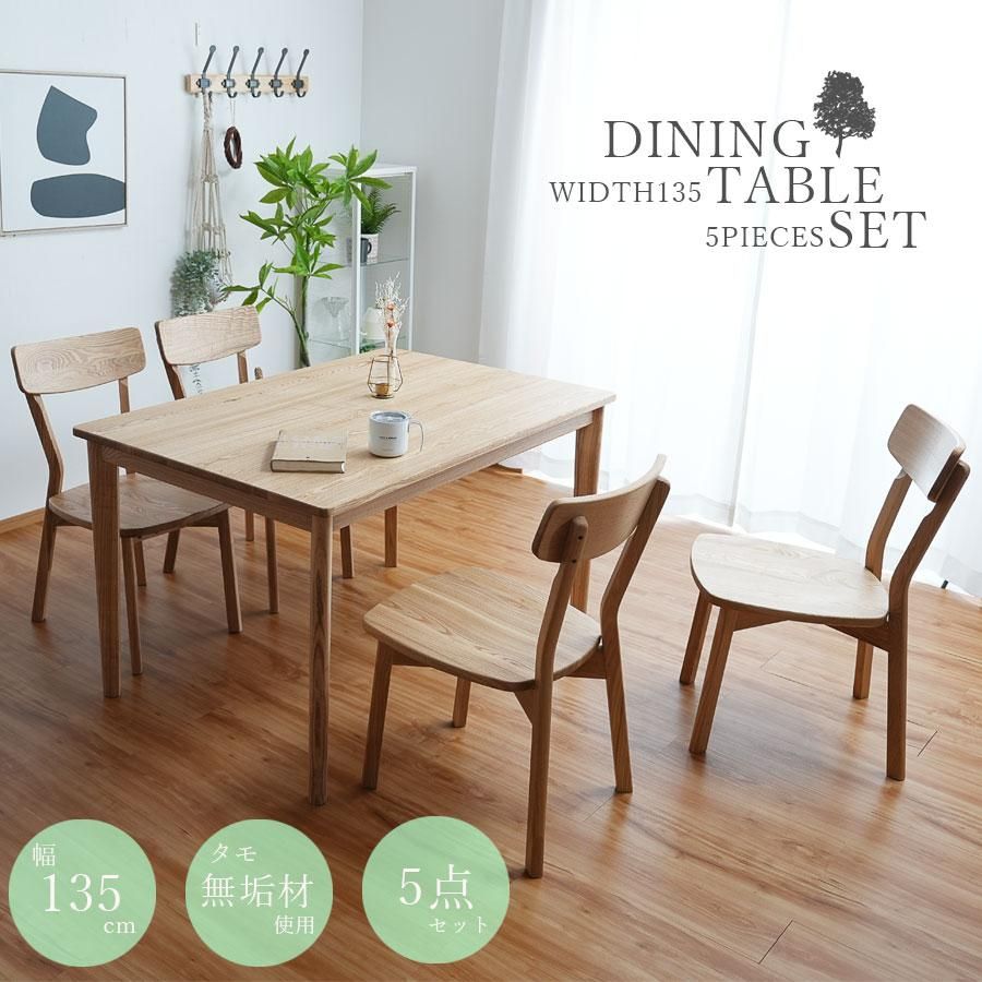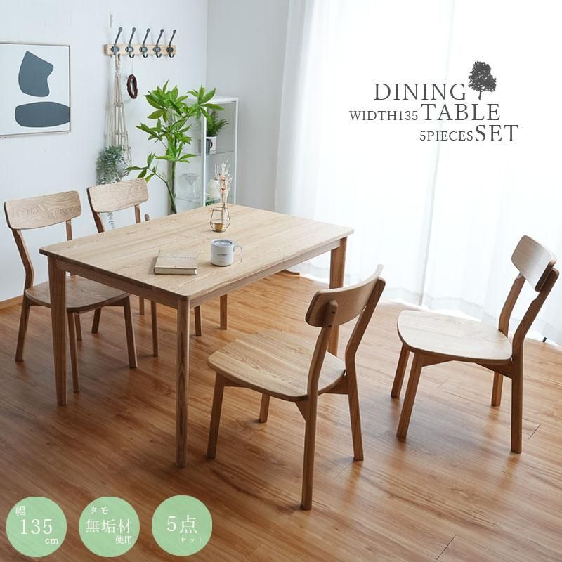 ダイニング5点セット ダイニングセット 4人用 天然木 北欧 長方形 幅135 4人掛け タモ無垢