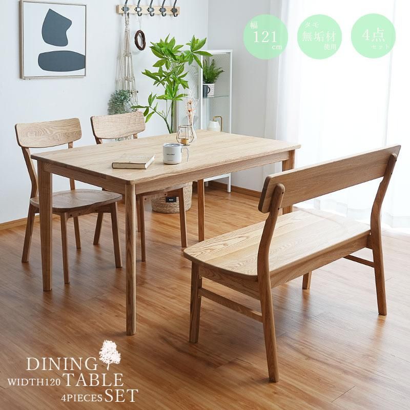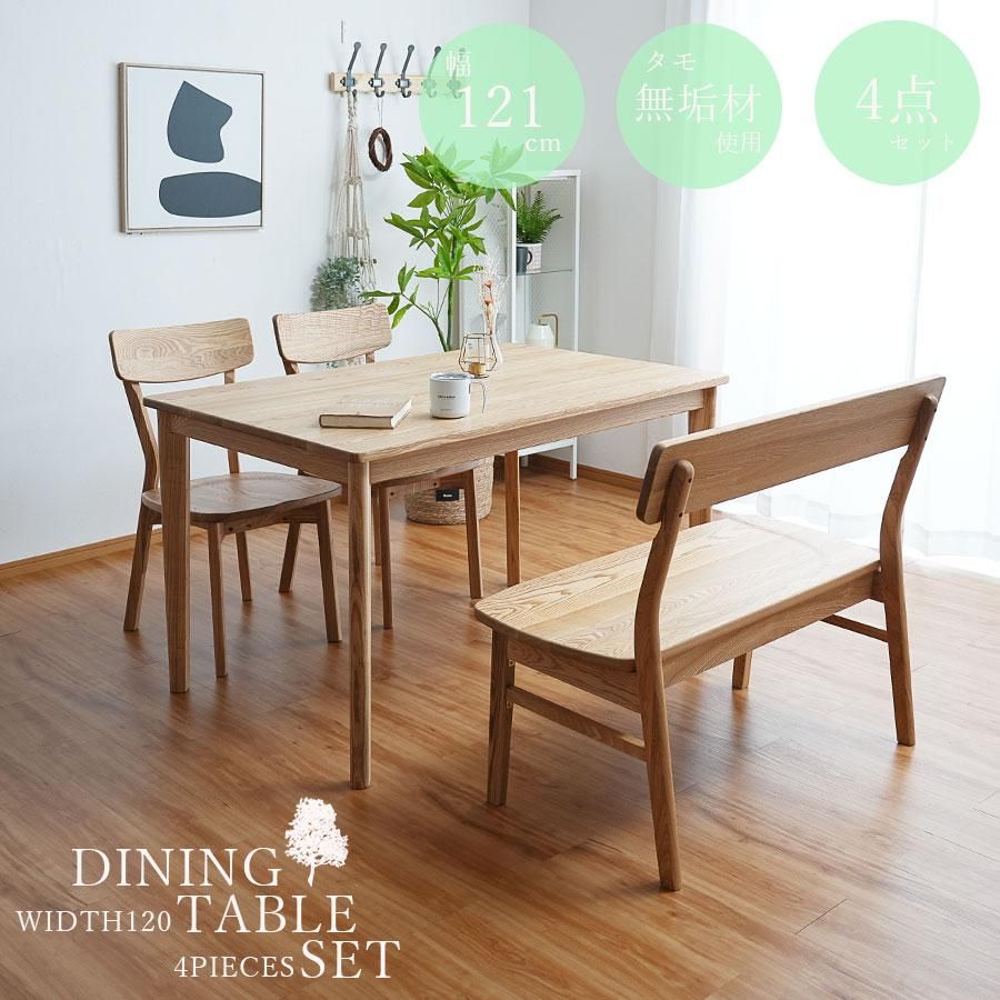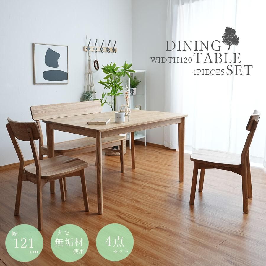 ダイニング4点セット ダイニングセット 4人用 天然木 北欧 長方形 幅120 4人掛け ベンチ タモ無垢