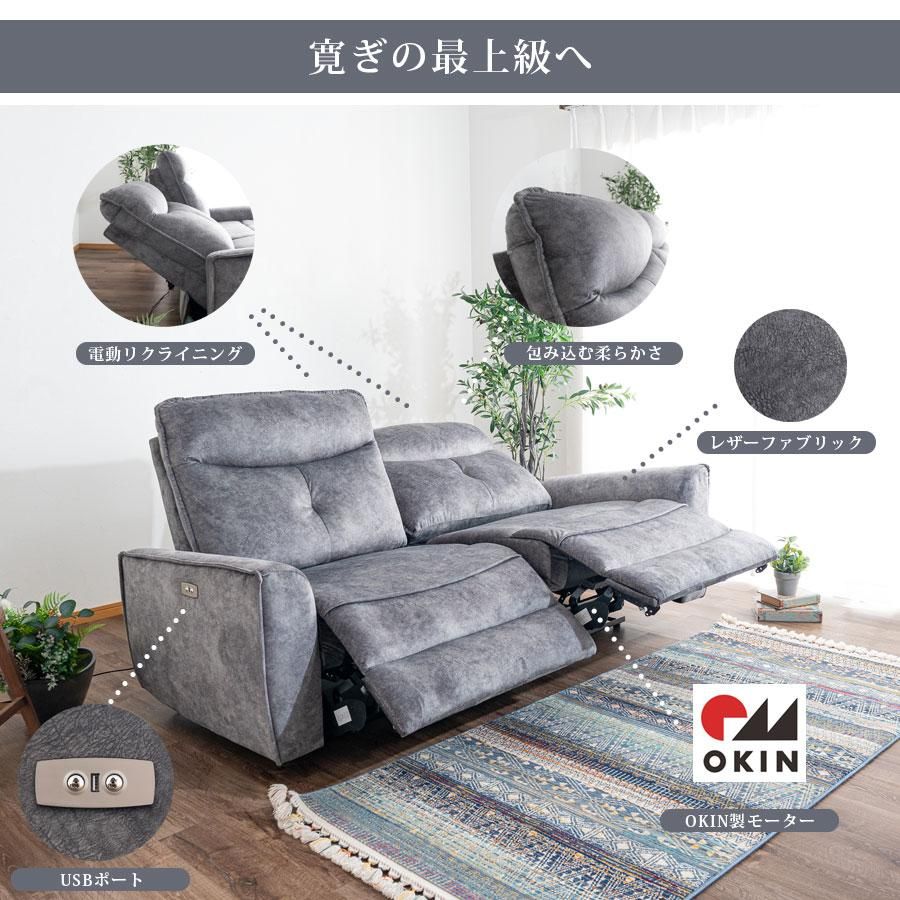 電動リクライニングソファ 3人掛け ソファー レザー 高級ソファ 3Pソファ 幅193cm おしゃれ