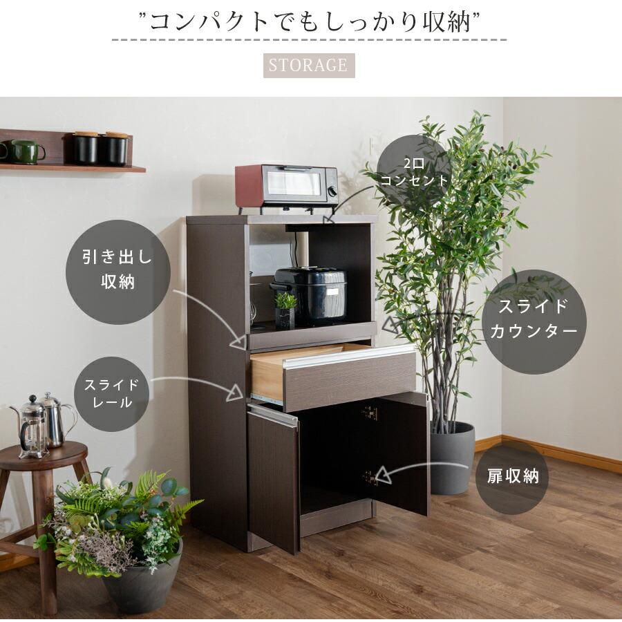 レンジ台 レンジラック 完成品 日本製 家電収納 幅60 コンパクト コンセント スライド棚 キッチンラック 一人暮らし レンジボード