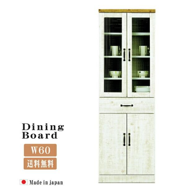 食器棚 ダイニングボード キッチンボード 60幅 幅60cm キッチン収納 カップボード 収納家具 食器収納 ガラス扉 日本製 北欧 おしゃれ 木製 ホワイト