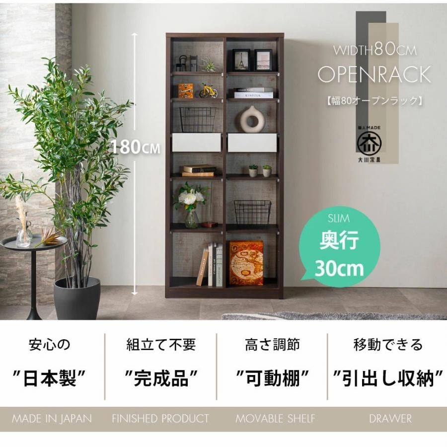 ラック オープンラック 本棚 完成品 棚 ハイタイプ フリーラック 奥行30 幅80 高さ180 マガジンラック コレクションラック 日本製 飾り棚 おしゃれ モダン かわいい アウトレット価格並