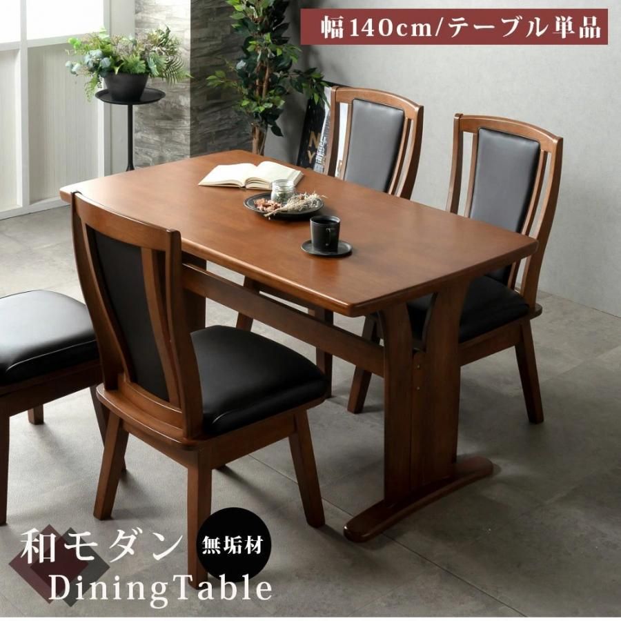 ダイニングテーブル 幅140 食卓 4人 シンプル テーブル単品 和モダン 天然木 無垢 ラバーウッド ブラウン ナチュラル 大川家具Matsumoto アウトレット価格
