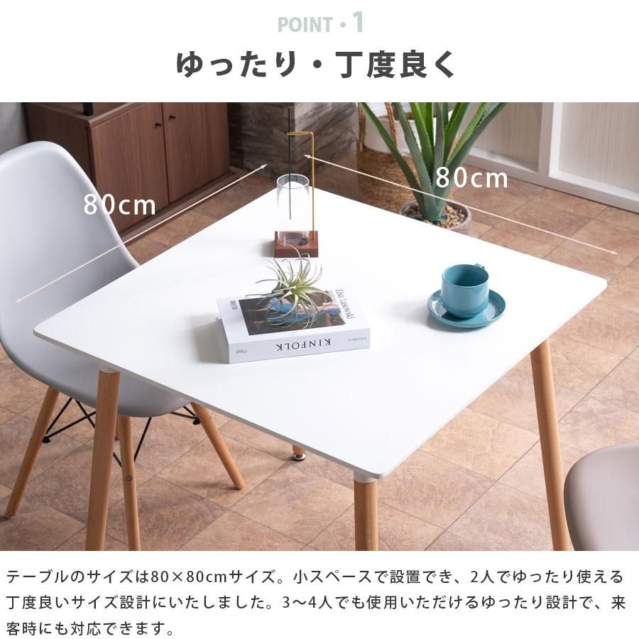 ダイニングテーブル 2人掛け用 2人用 おしゃれ 幅80 正方形 食卓テーブル ホワイト シンプル コンパクト カフェテイスト カジュアル 省スペース