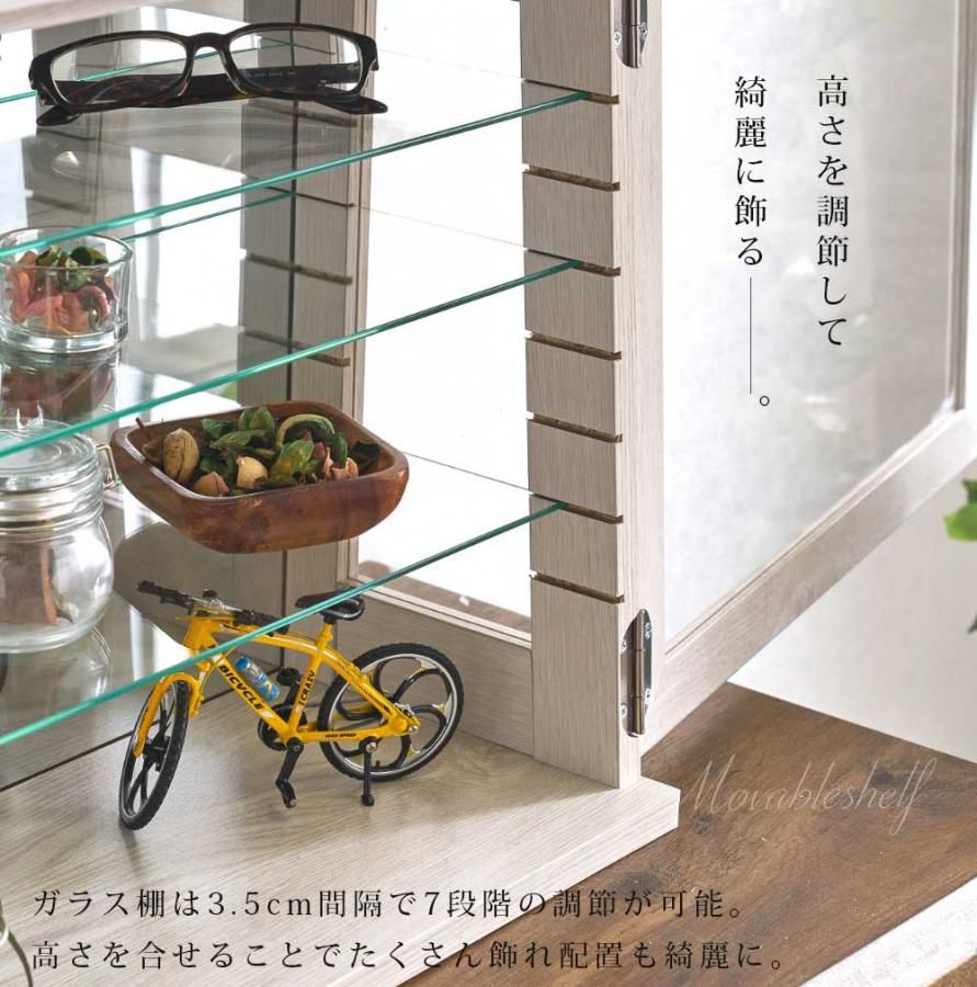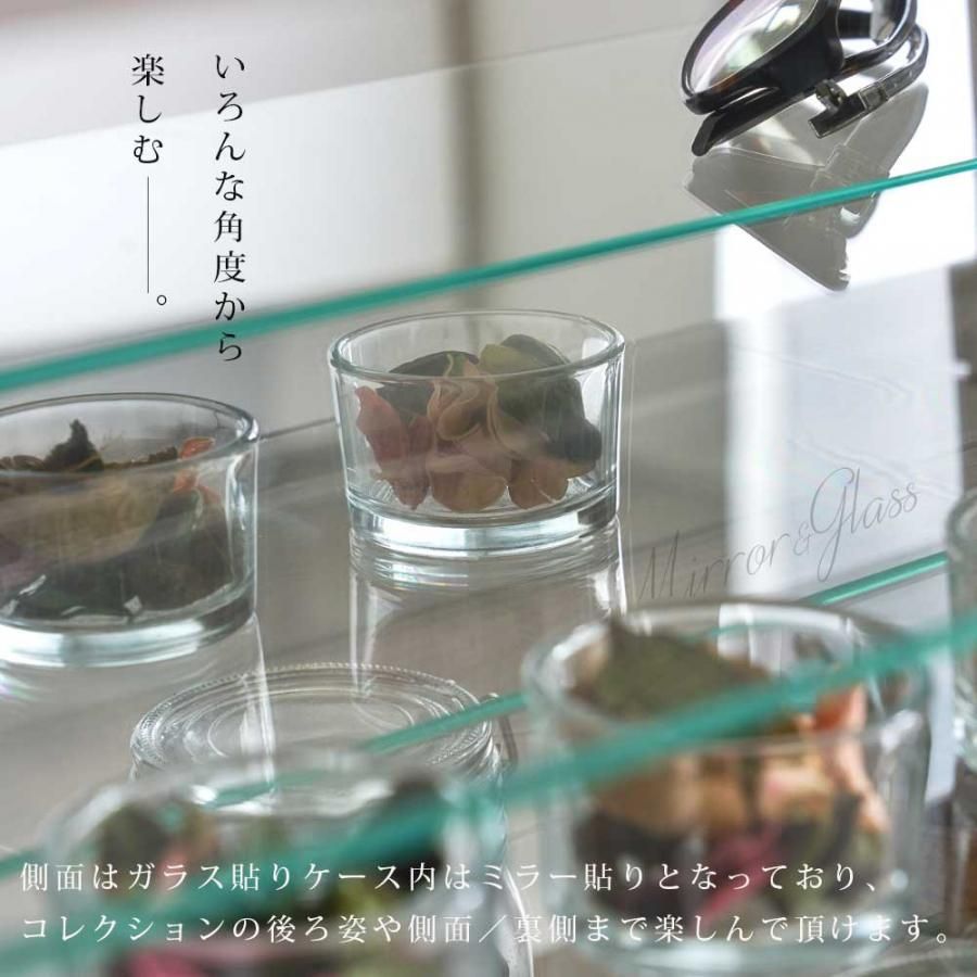 コレクションボックス 小物収納 北欧 シンプル モダン かわいい ナチュラル ホワイト ダークブラウン 鏡 高級感 キュリオケース 可動棚 高さ調節 マグネット扉