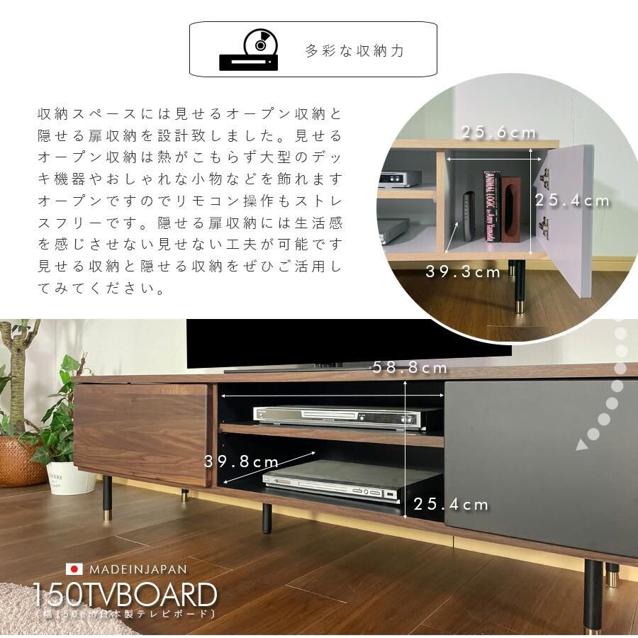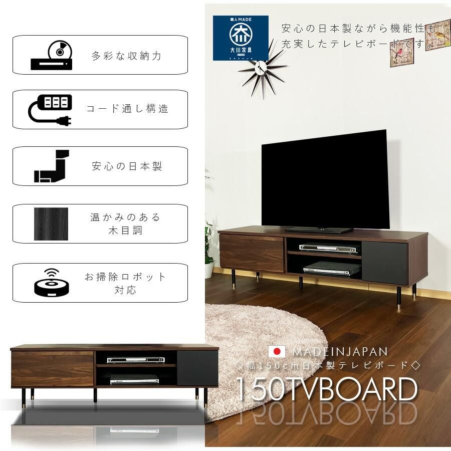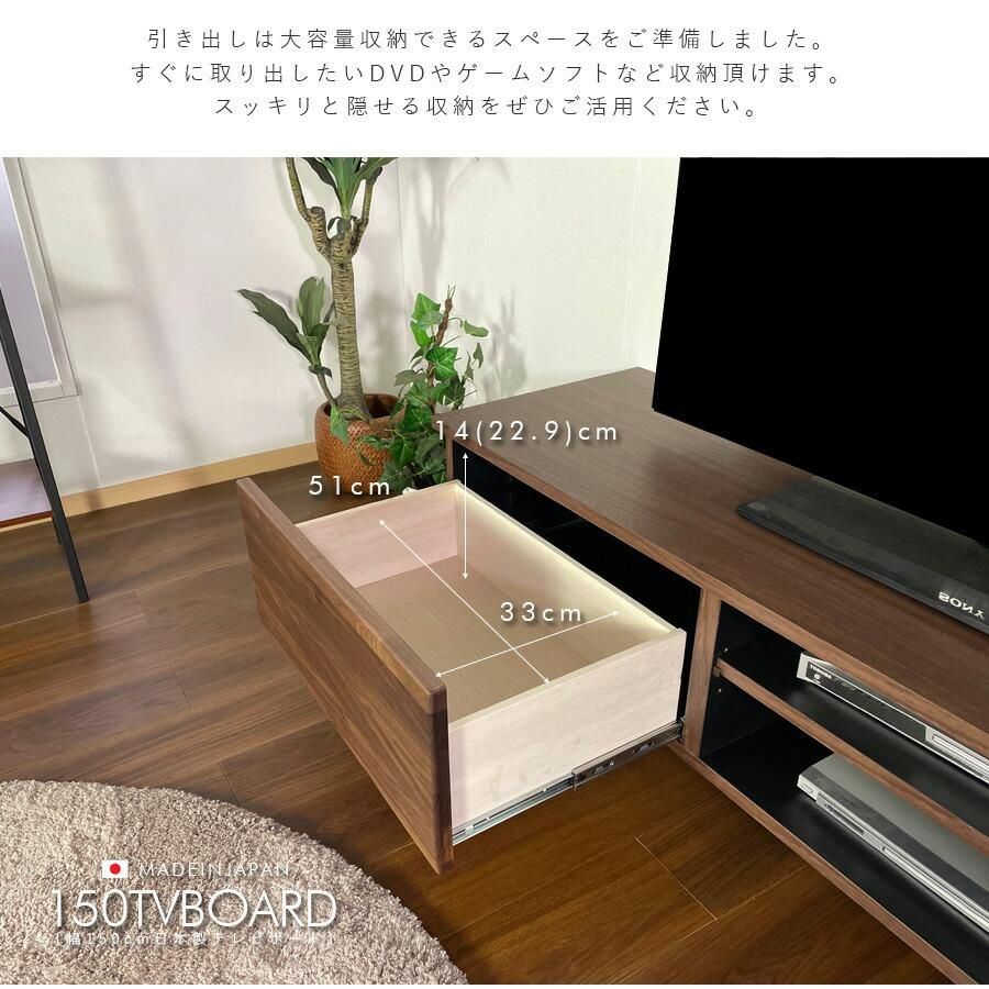 テレビ台 テレビボード ブラウン ナチュラル リビング収納 TVボード AV機器収納 オーク ウォールナット日本製 幅150 木製 おしゃれ 北欧 モダン ロータイプ
