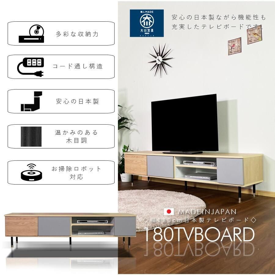 テレビ台 テレビボード ブラウン ナチュラル リビング収納 TVボード AV機器収納 オーク ウォールナット日本製 幅180 木製 おしゃれ 北欧 モダン ロータイプ