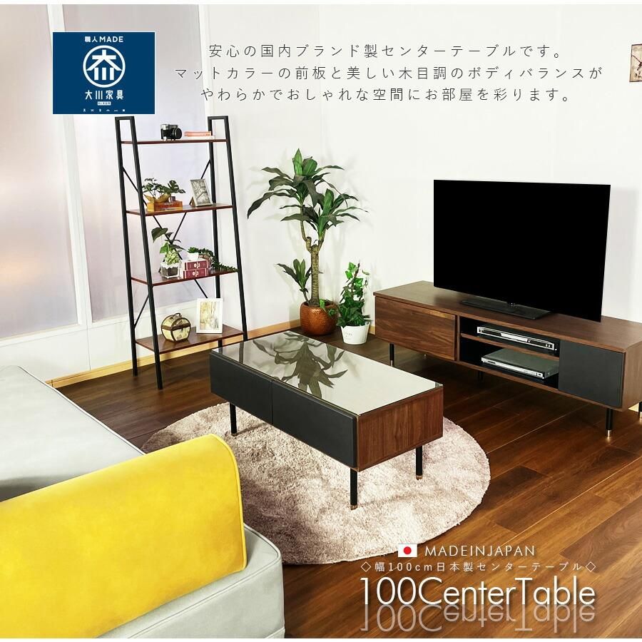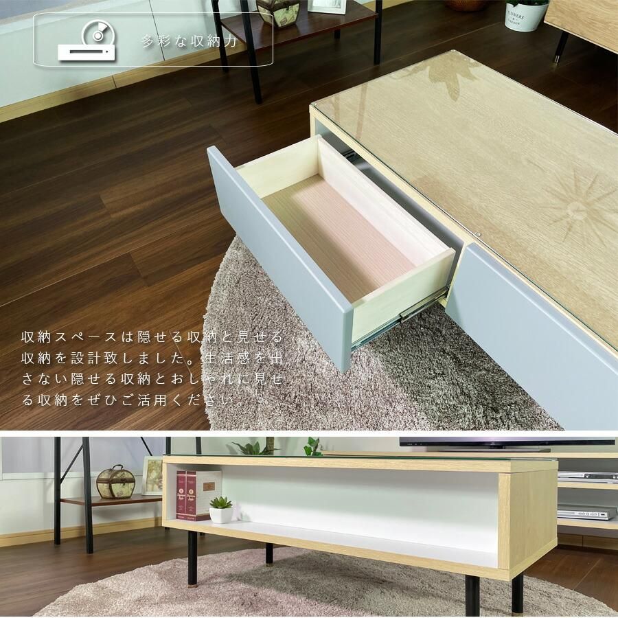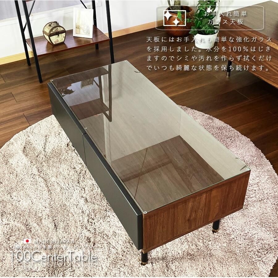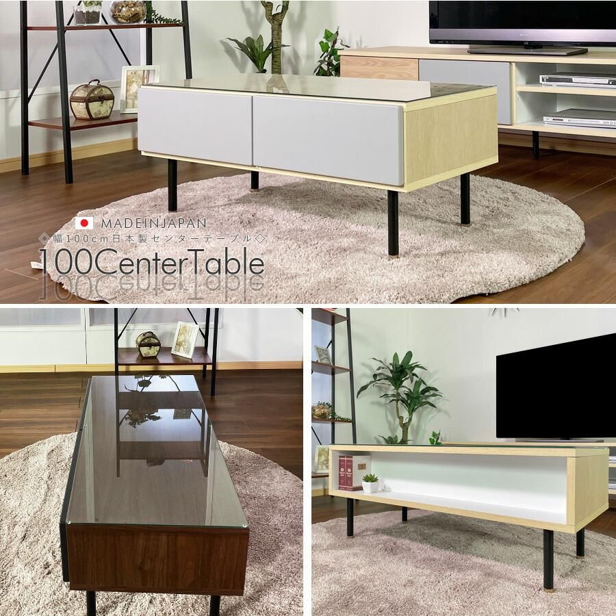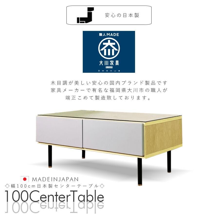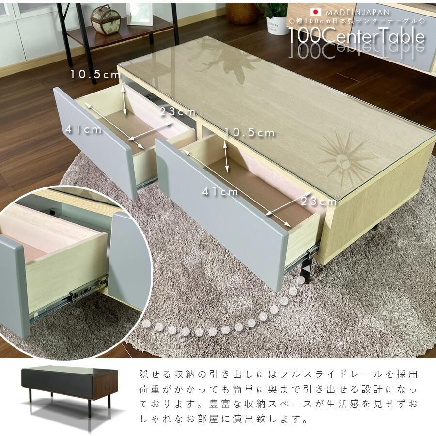 センターテーブル 北欧 モダン 高さ41cm 引き出し付 北欧 国産品 脚付 お掃除ロボット対応 ナチュラル ブラウン おしゃれ 幅100 収納付 日本製 木製