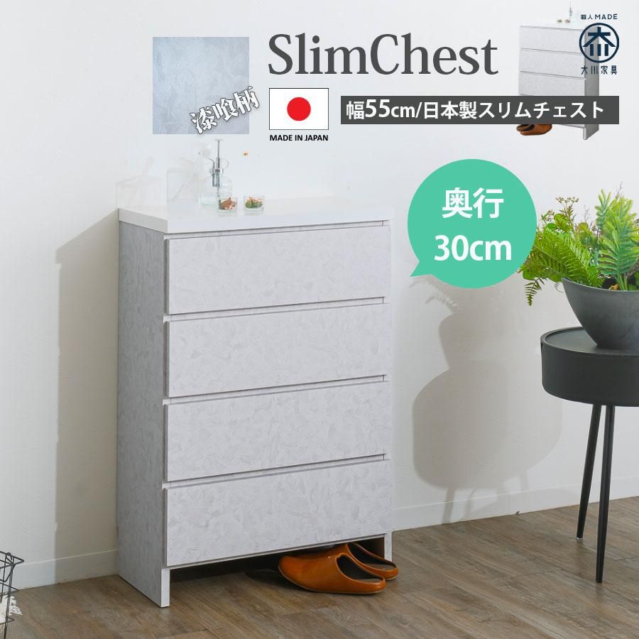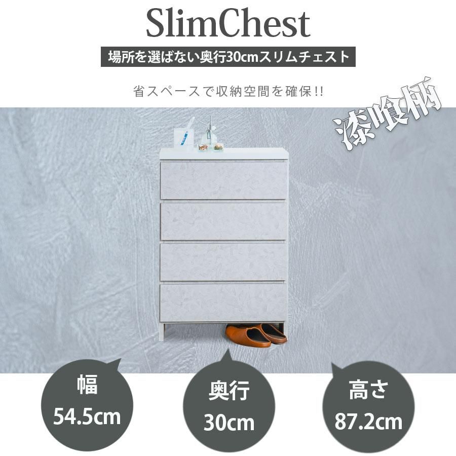 チェスト ランドリーチェスト スリムチェスト 薄型 ランドリー収納 奥行30 幅55 隙間収納 おしゃれ グレー モダン 漆喰 引き出し 体重計収納 スリッパ収納