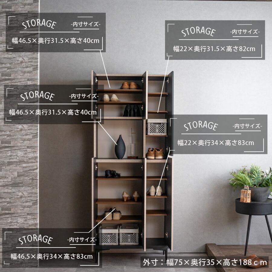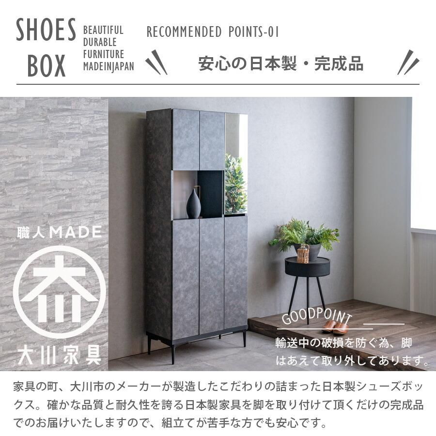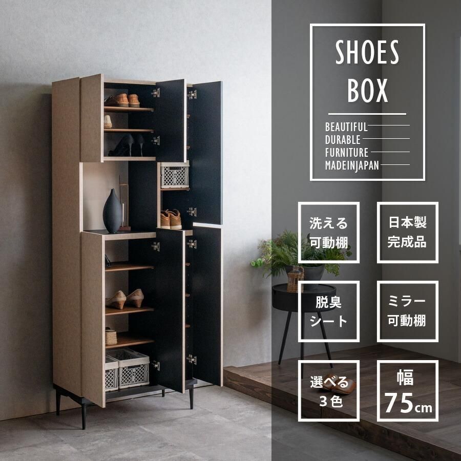 シューズボックス 完成品 下駄箱 ハイタイプ 玄関収納 靴箱 幅75cm 75 消臭コーティング シューズBOX 靴収納 シンプル 日本製 国産 モダン 石目調