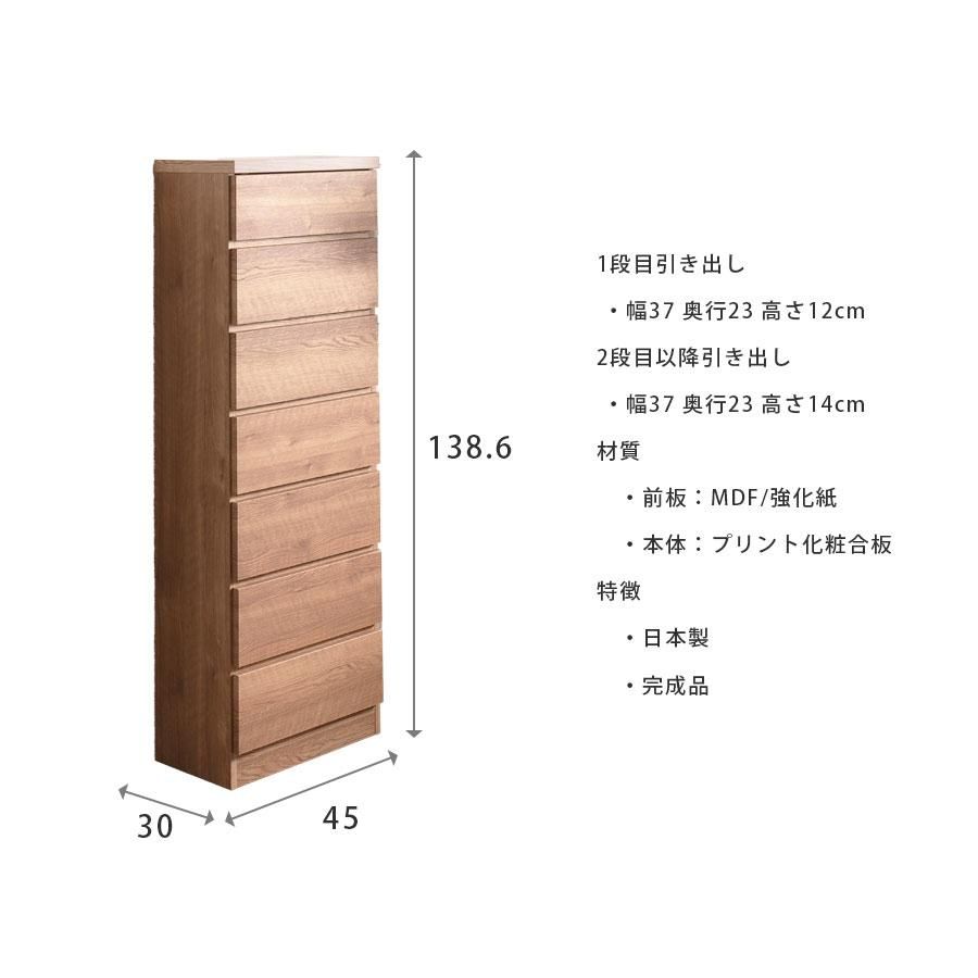 隙間収納 スリムチェスト 全28サイズ 完成品 幅45 7段 日本製 奥行30 薄型チェスト ハイチェスト 引き出し収納 タンス おしゃれ シンプル ナチュラル