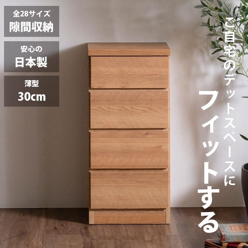 隙間収納 スリムチェスト 全28サイズ 完成品 幅45 4段 日本製 奥行30 薄型チェスト ハイチェスト 引き出し収納 タンス おしゃれ シンプル ナチュラル