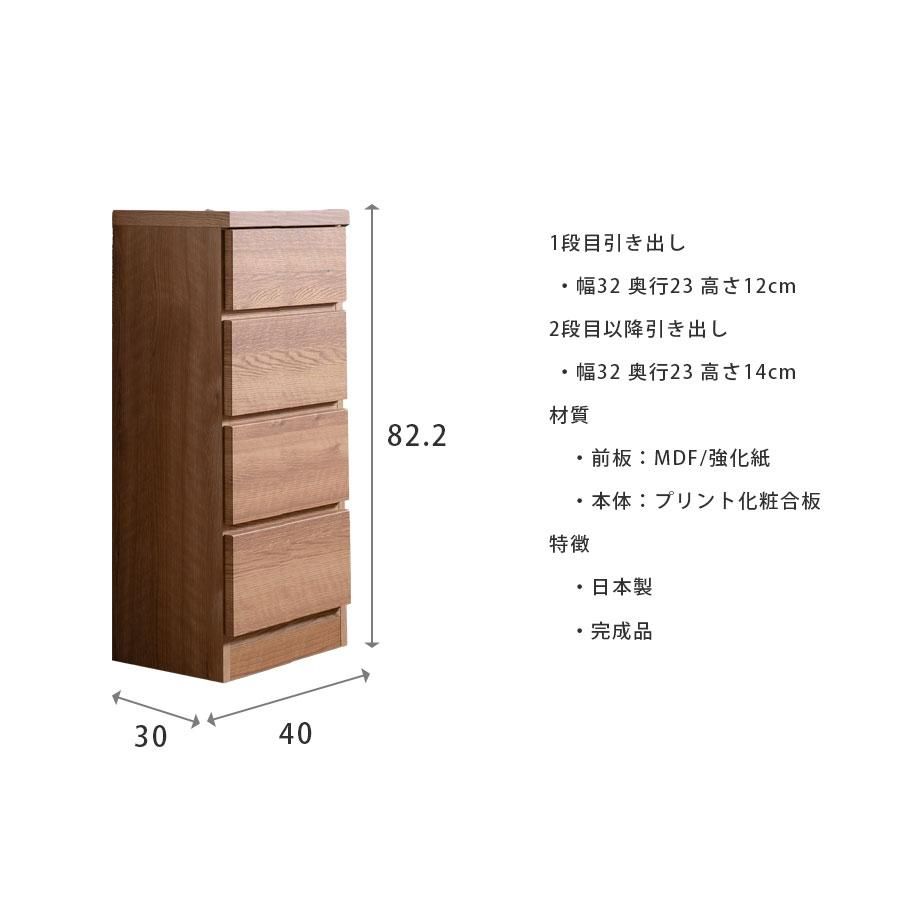 隙間収納 スリムチェスト 全28サイズ 完成品 幅40 4段 日本製 奥行30 薄型チェスト ハイチェスト 引き出し収納 タンス おしゃれ シンプル ナチュラル