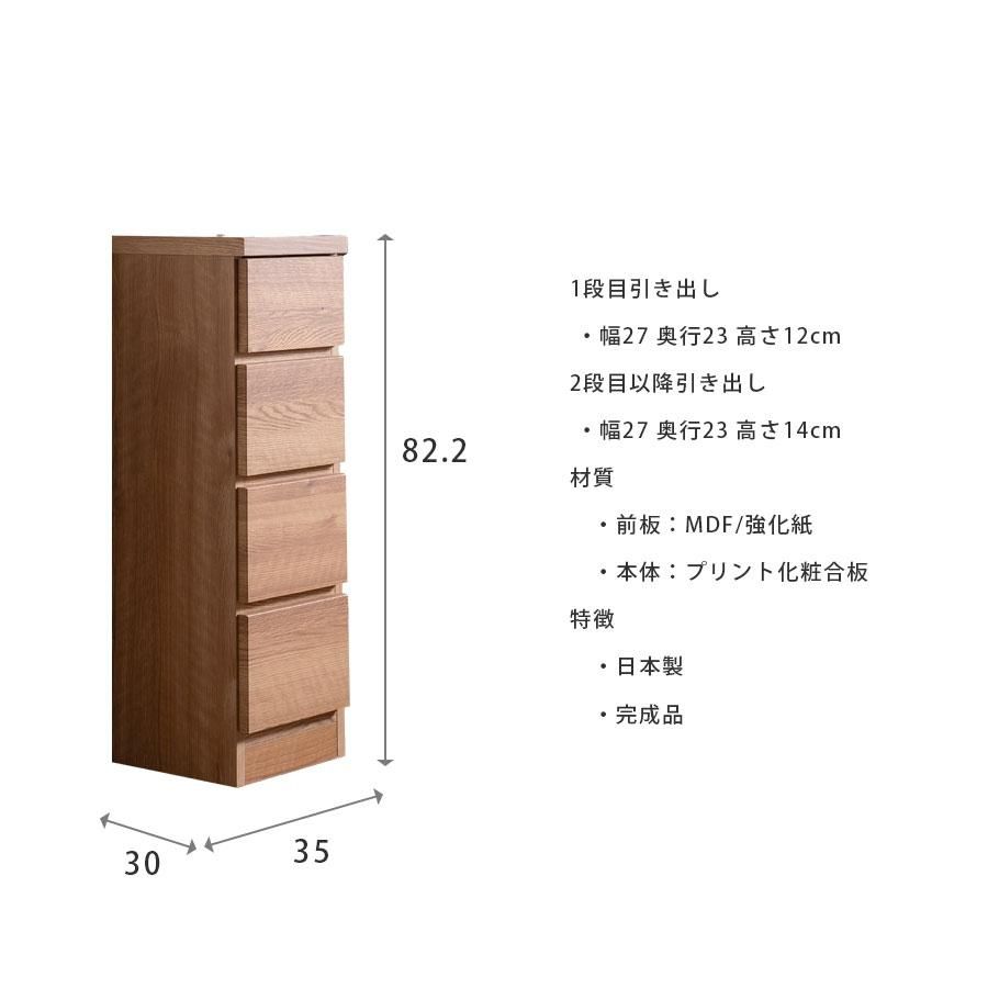 隙間収納 スリムチェスト 全28サイズ 完成品 幅35 4段 日本製 奥行30 薄型チェスト ハイチェスト 引き出し収納 タンス おしゃれ シンプル ナチュラル
