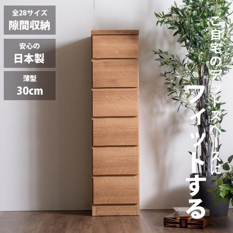隙間収納 スリムチェスト 全28サイズ 完成品 幅30 6段 日本製 奥行30 薄型チェスト ハイチェスト 引き出し収納 タンス おしゃれ シンプル ナチュラル