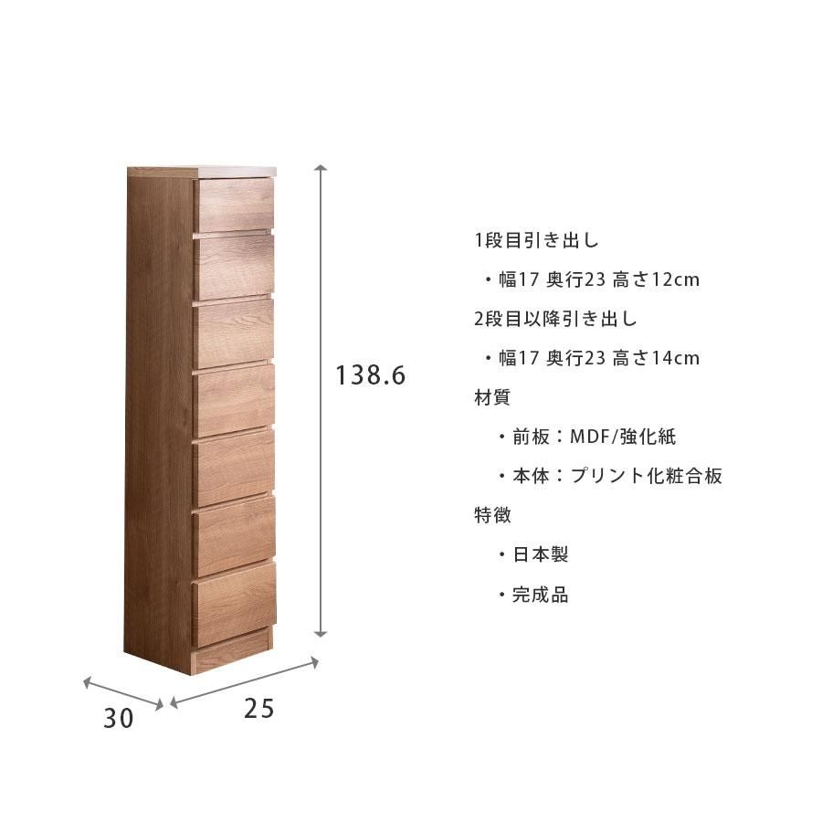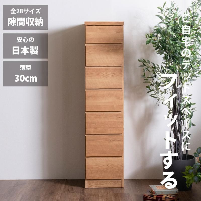 隙間収納 スリムチェスト 全28サイズ 完成品 幅25 7段 日本製 奥行30 薄型チェスト ハイチェスト 引き出し収納 タンス おしゃれ シンプル ナチュラル