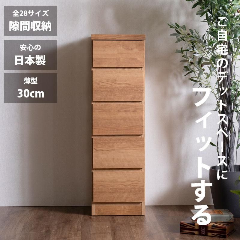 隙間収納 スリムチェスト 全28サイズ 完成品 幅25 5段 日本製 奥行30 薄型チェスト ハイチェスト 引き出し収納 タンス おしゃれ シンプル ナチュラル