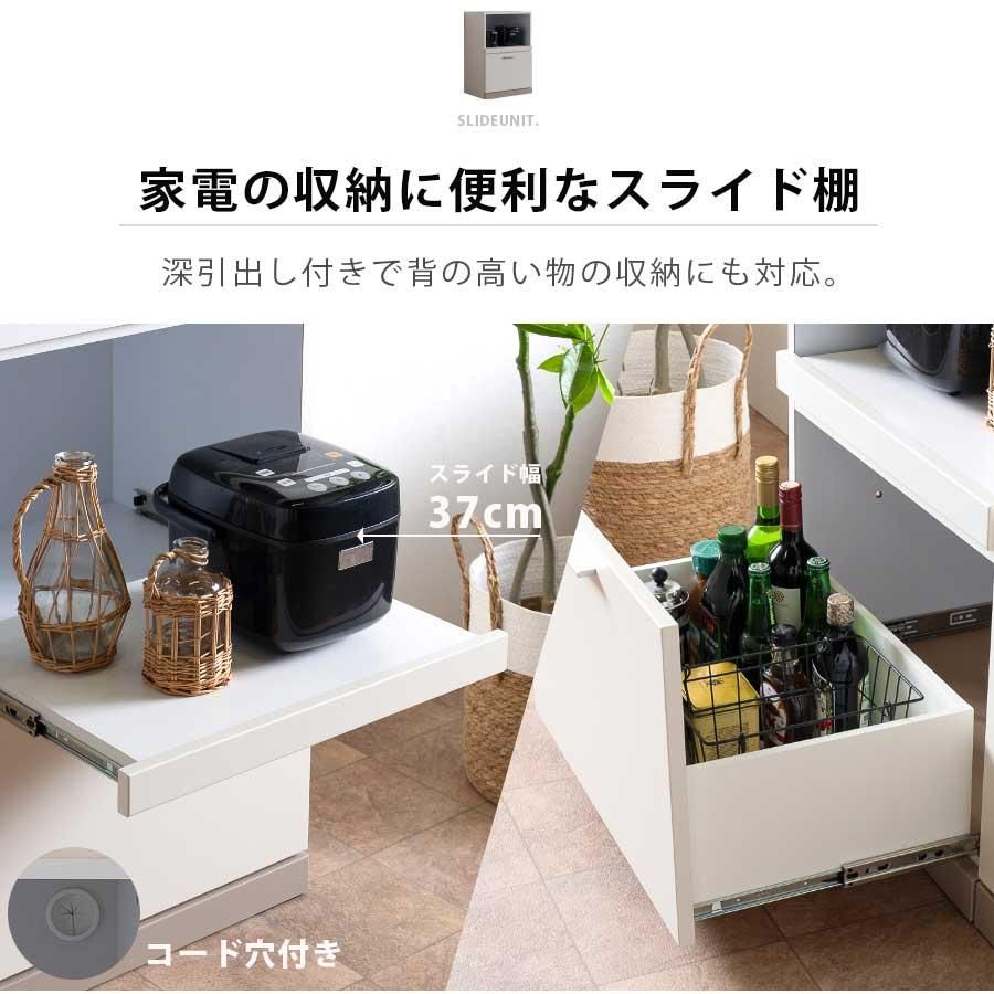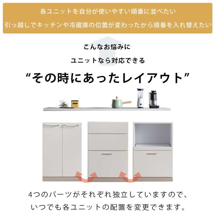 選べるユニットタイプ 入れ替え 5パターン 可動棚 スライドカウンター 家電収納 位置変更 韓国テイスト 北欧 ワイド 扉収納 かわいい おしゃれ
