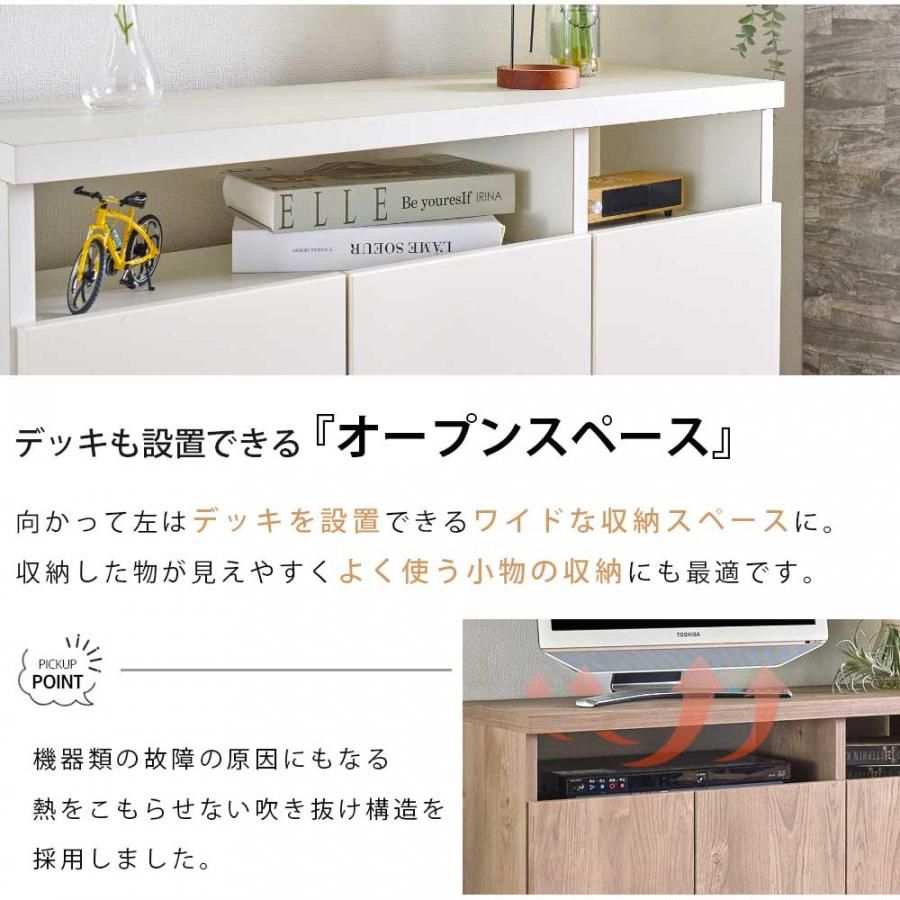 リビングボード 国産 90cm幅 90cm 木目調 ナチュラル ライトブラウン アイボリー グレージュ デッキ収納 機器収納 テレビ TV オープン 組立て不要