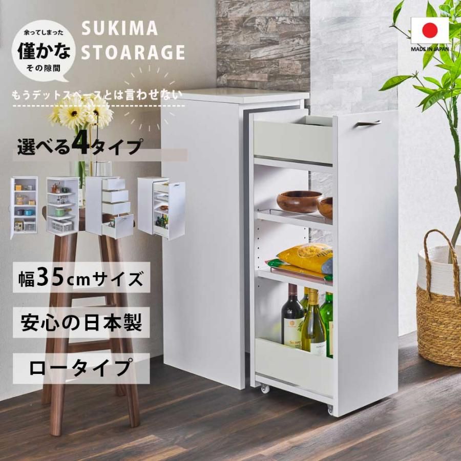 ロータイプ ほぼ完成品 可動棚 スリム ユニット 隙間ラック ランドリーラック ランドリー収納 キッチンラック キッチン収納 食器棚 収納庫 キャスター付き