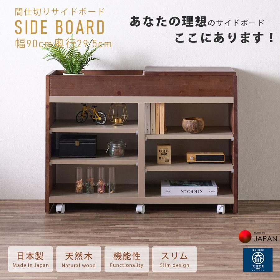 サイドボード キャビネット 幅90 薄型 収納 奥行29.5 スリム コンパクト 日本製 大川家具 完成品 おしゃれ 北欧 ライトブラウン ダークブラウン 茶色