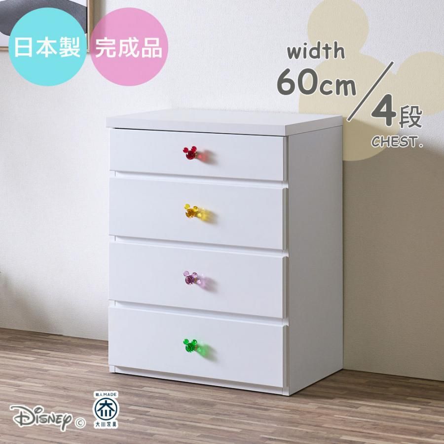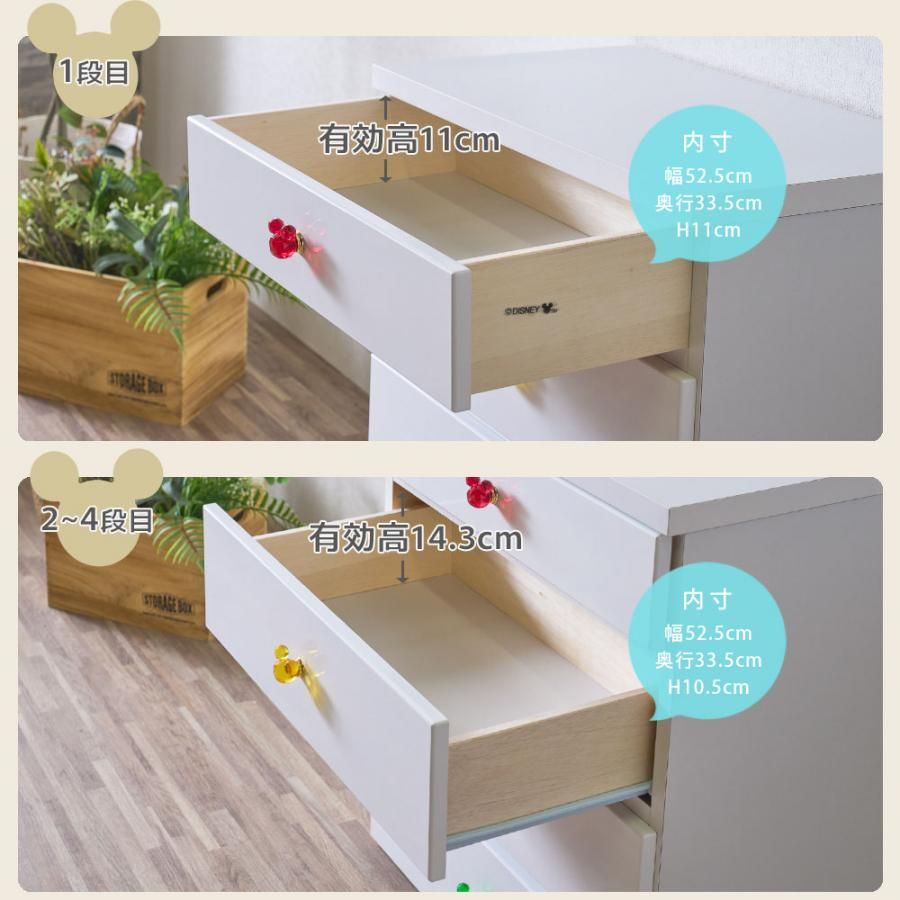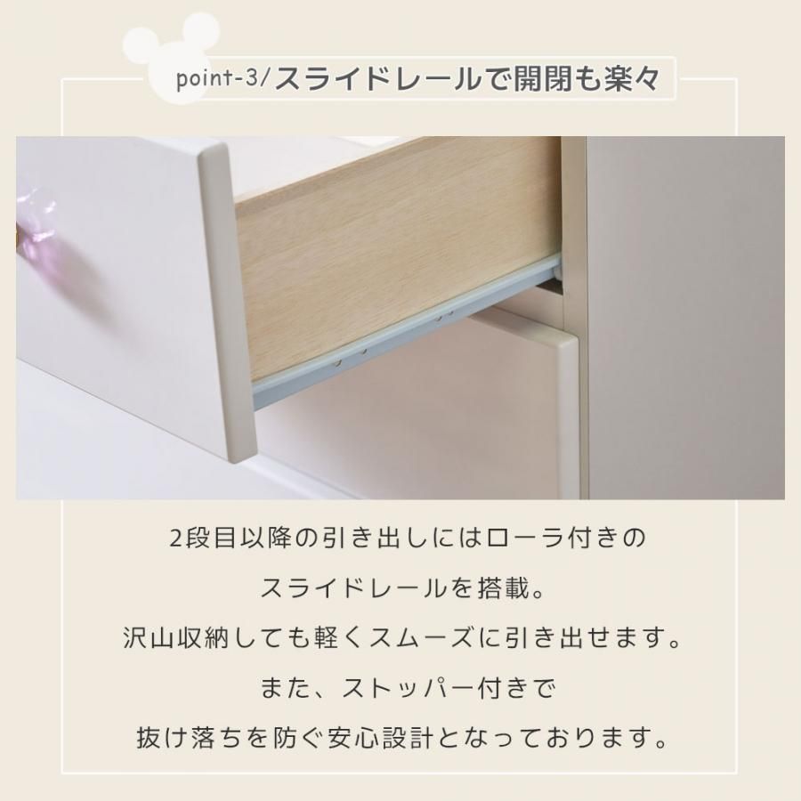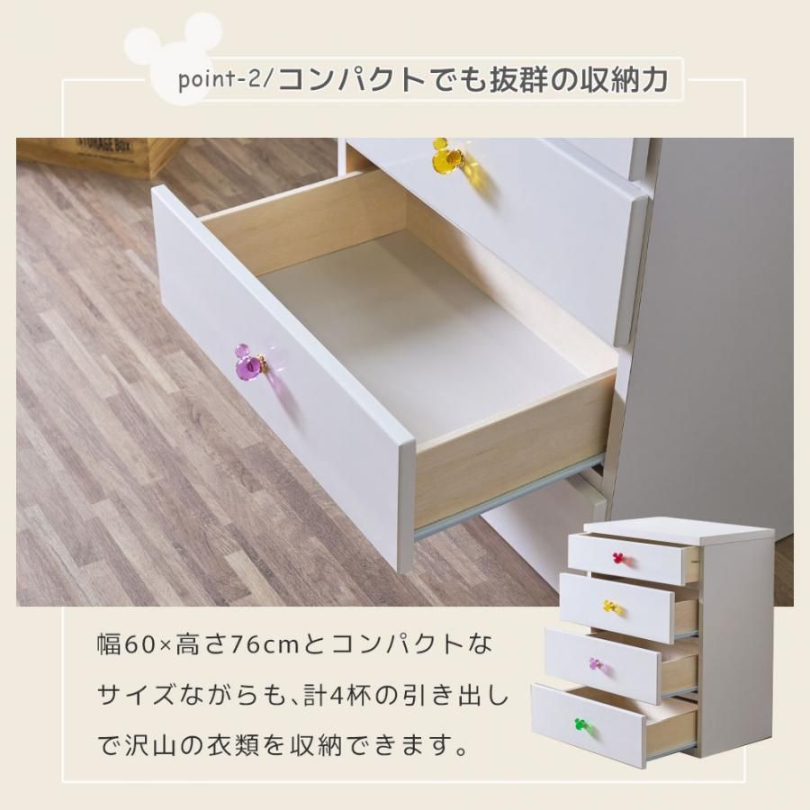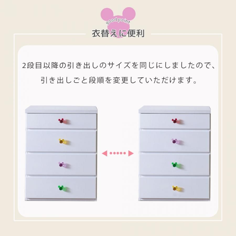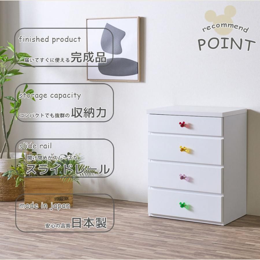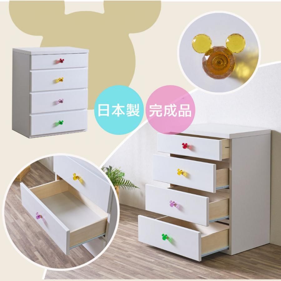 大人になっても使える キュートな ミッキーチェスト 隠れミッキーのような 可愛い取っ手 出し入れ楽々 スライドレール付きの引出し カラフル