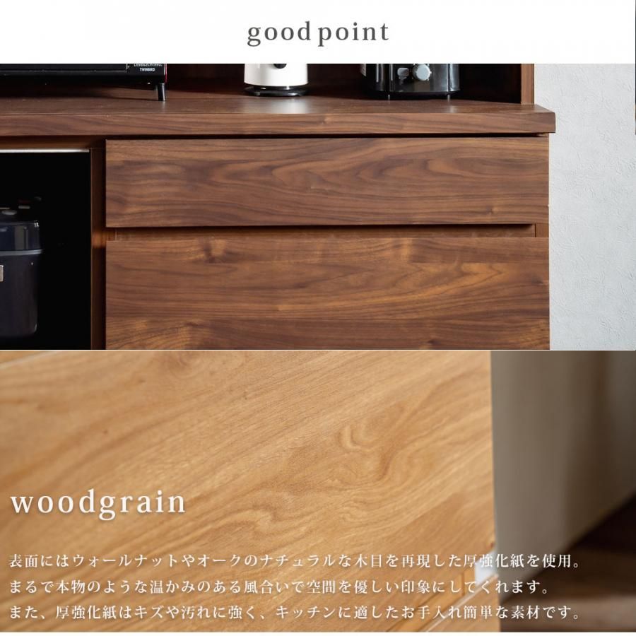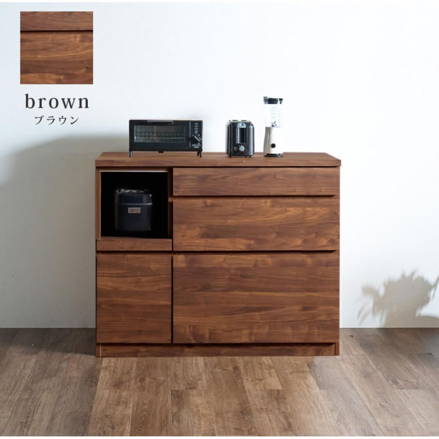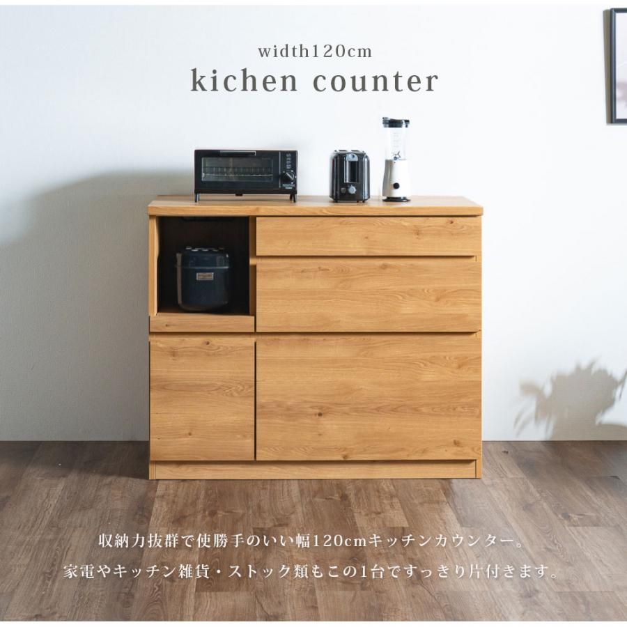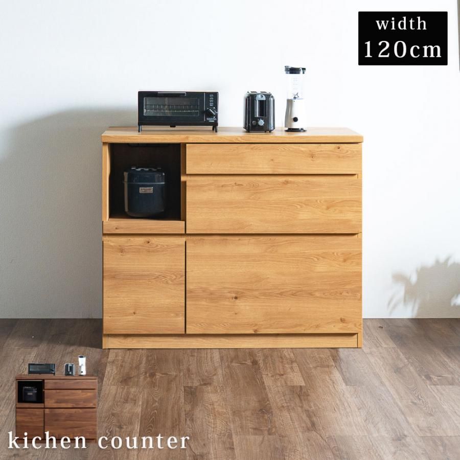 キッチンカウンター 幅120 レンジ台 キッチン収納 引出し シンプル モダン 北欧 おしゃれ コンパクト 高さ90cm 木目調 ウォールナット柄 オーク柄 ブラウン