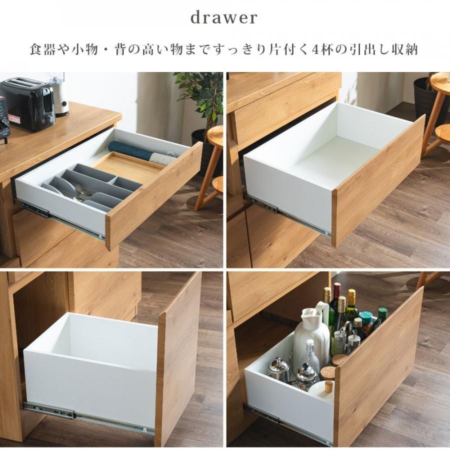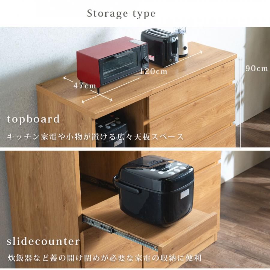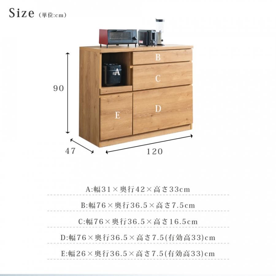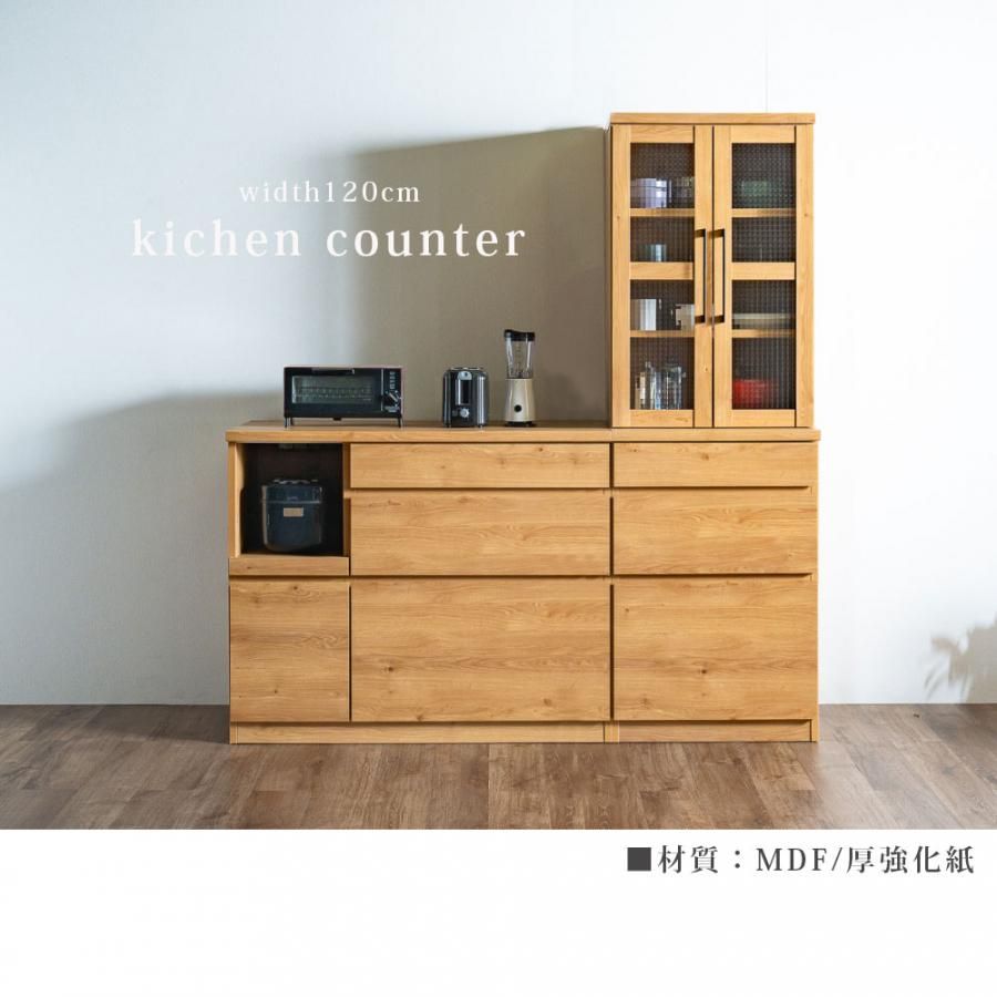 キッチンカウンター 幅120 レンジ台 キッチン収納 引出し シンプル モダン 北欧 おしゃれ コンパクト 高さ90cm 木目調 ウォールナット柄 オーク柄 ブラウン