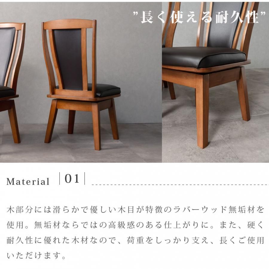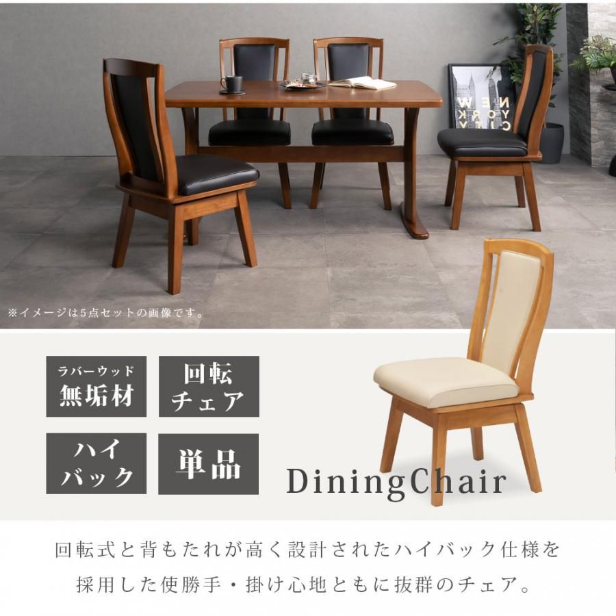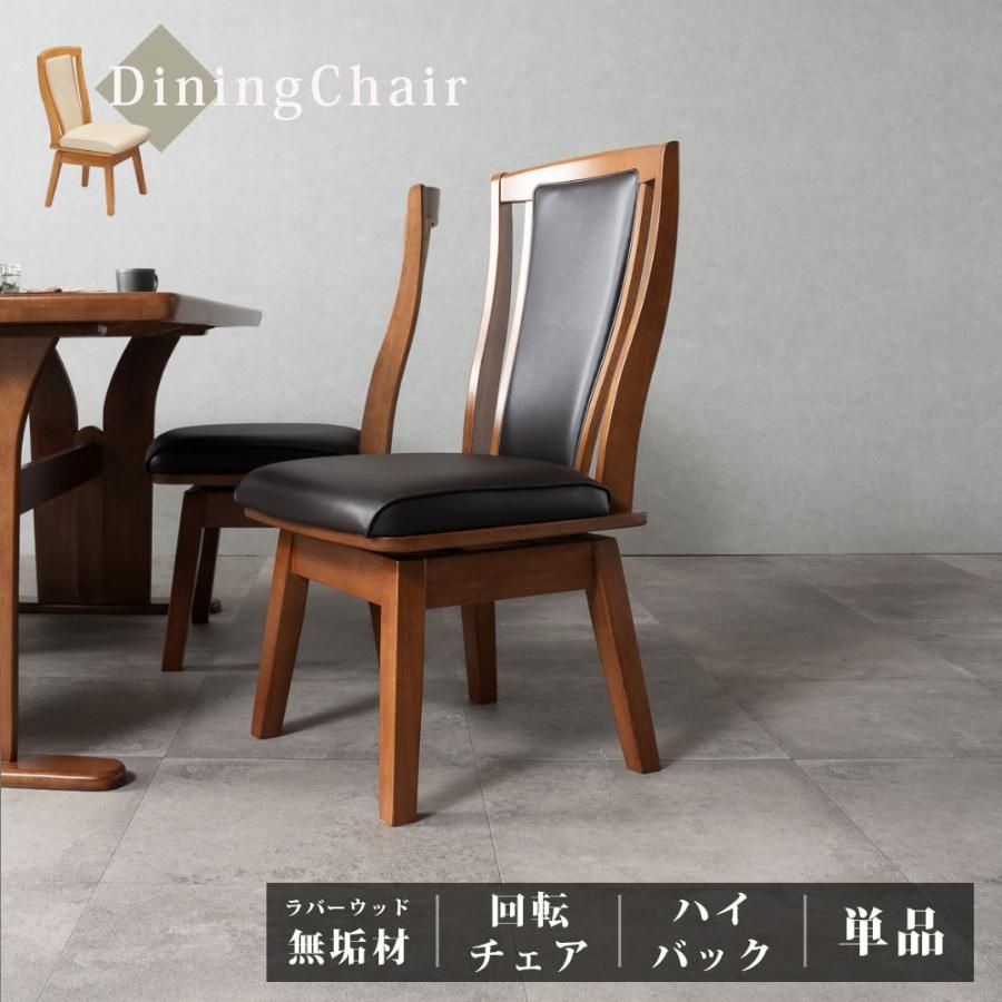 チェア ダイニングチェア 回転式 ハイバック 単品 モダン 和風 食卓 無垢 ラバーウッド お手入れ簡単 ブラウン ナチュラル 座りやすい 便利 シンプル