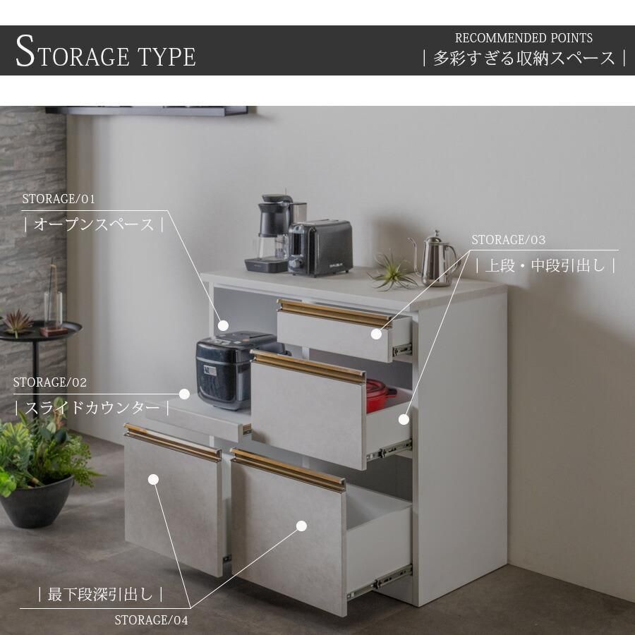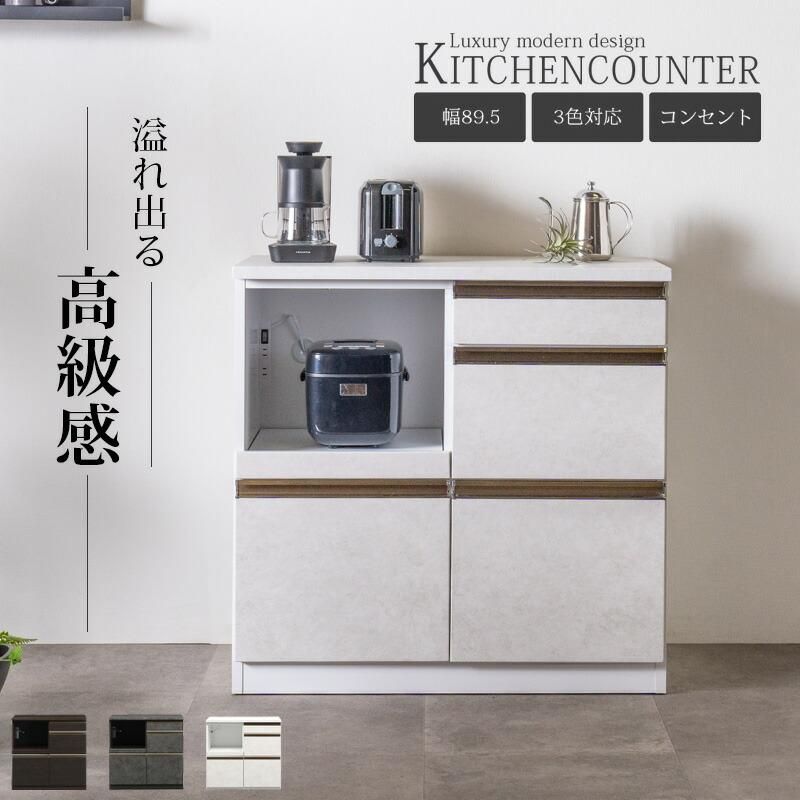 キッチンカウンター 幅90 完成品 キッチン収納 レンジ台 モダン カウンター 引出し おしゃれ セラミック調 木目調 石目調 グレー ブラウン ホワイト