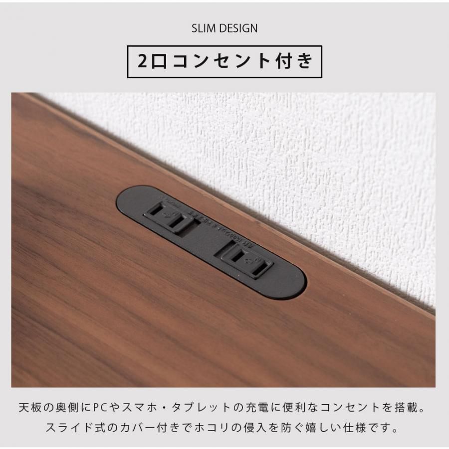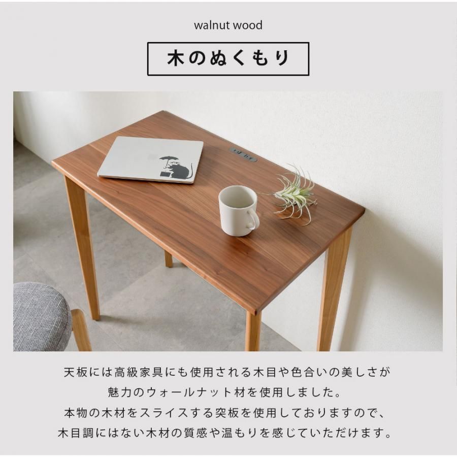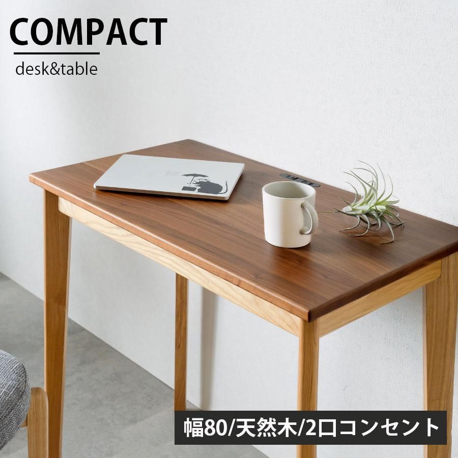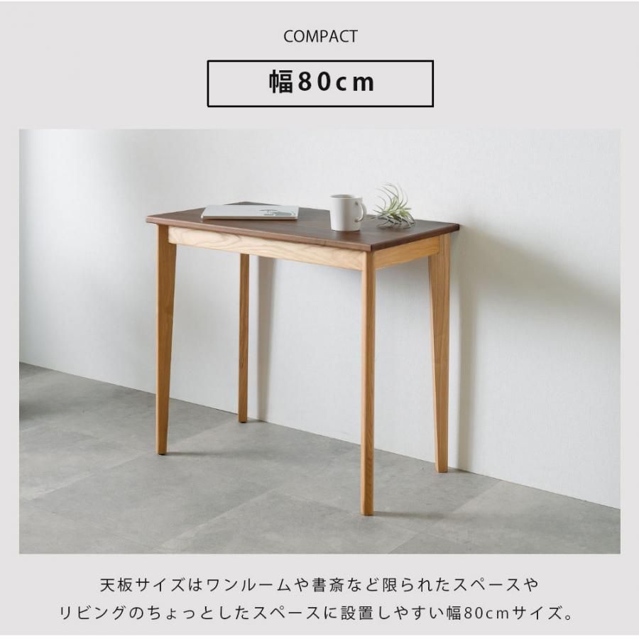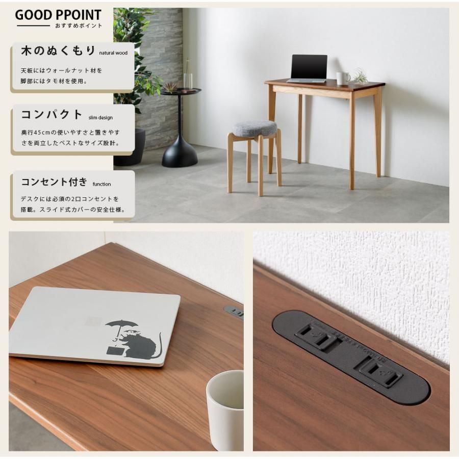 デスク コンソールテーブル 幅80 ウォールナット 天然木 タモ 奥行45 スリム コンパクト 一人暮らし テレワーク コンセント付き