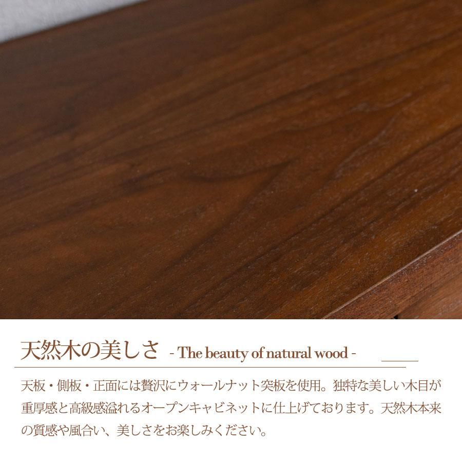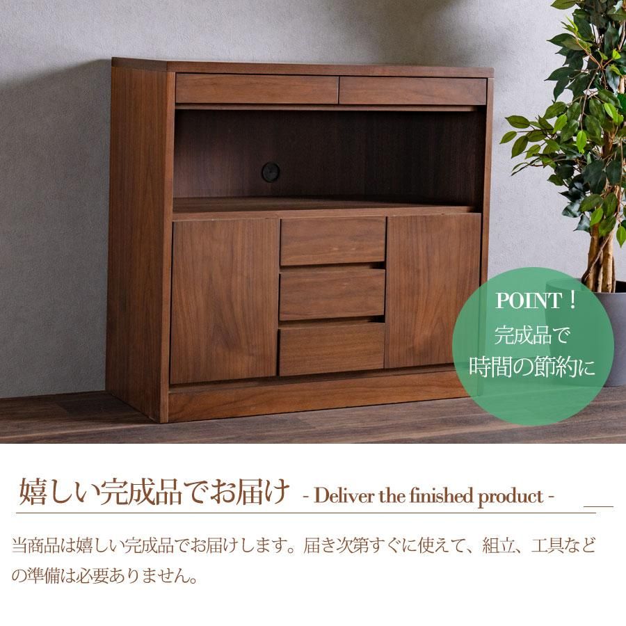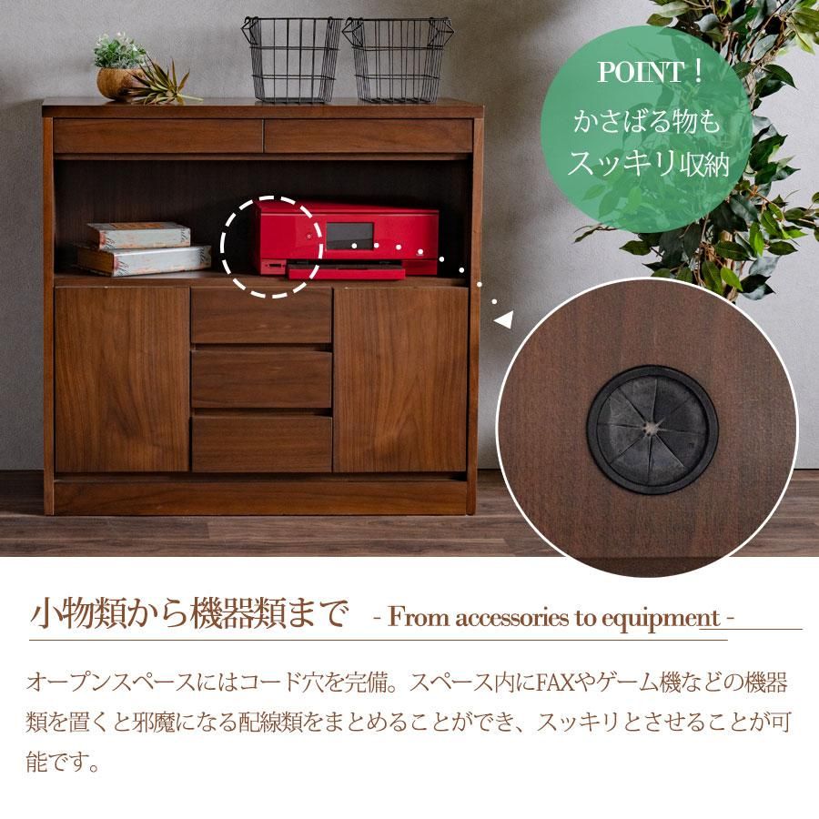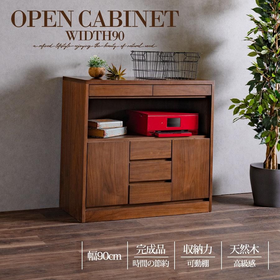 キャビネット 完成品 天然木 収納 可動棚 化粧仕上げ オープンスペース 90幅 引出し 扉 アリ組 箱組 北欧 モダン ブラウン ウォールナット突板