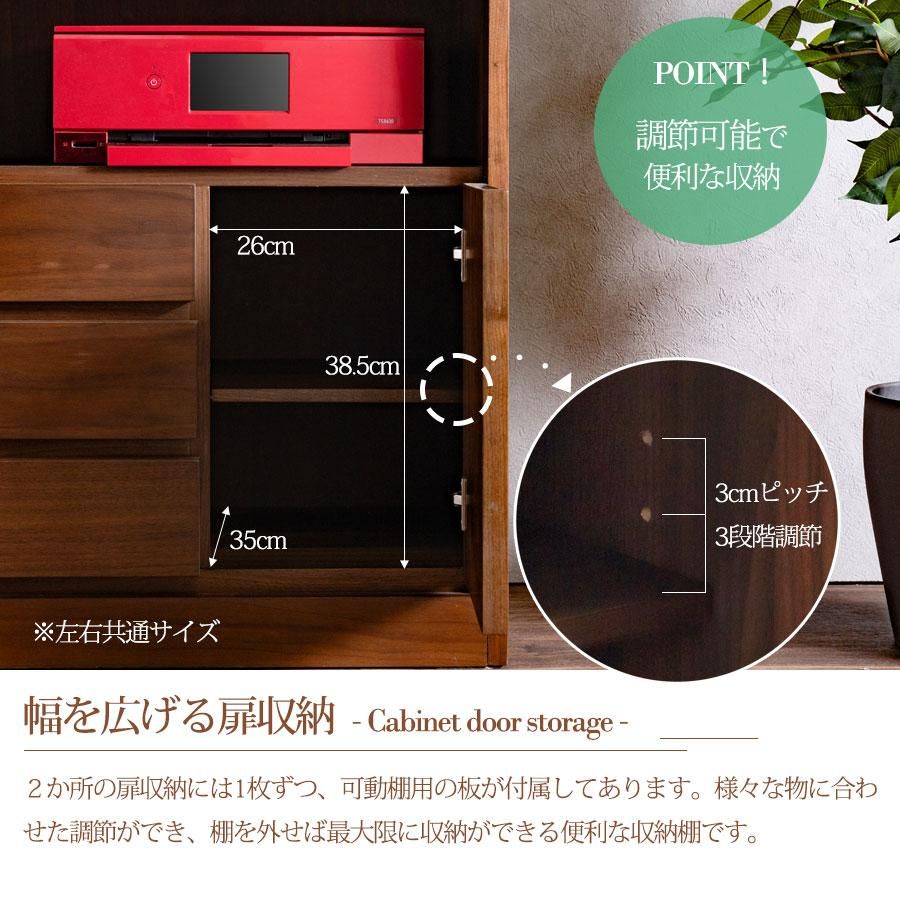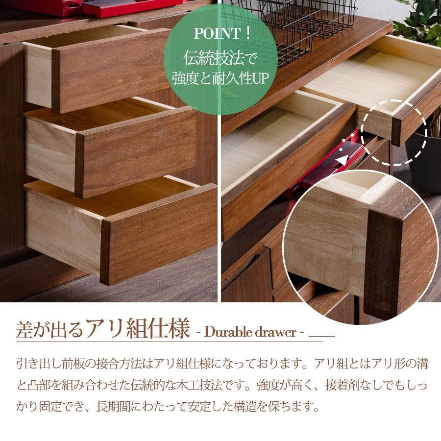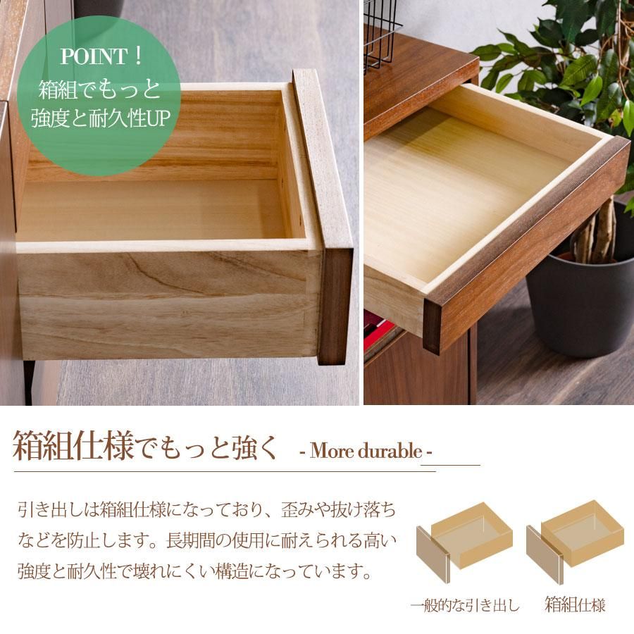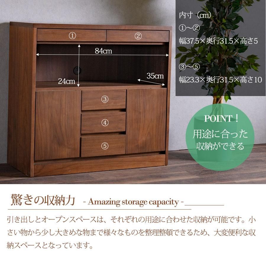 キャビネット 完成品 天然木 収納 可動棚 化粧仕上げ オープンスペース 90幅 引出し 扉 アリ組 箱組 北欧 モダン ブラウン ウォールナット突板