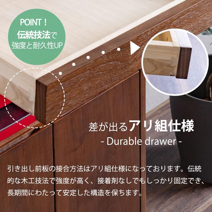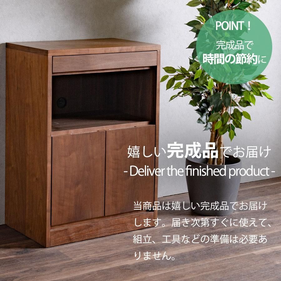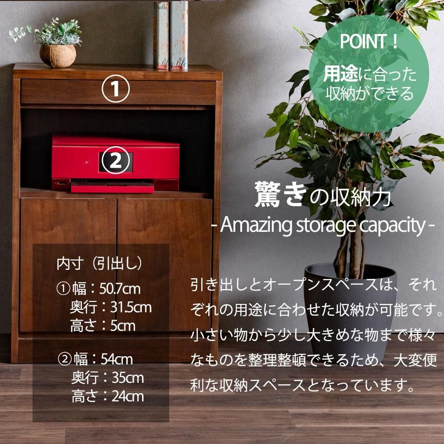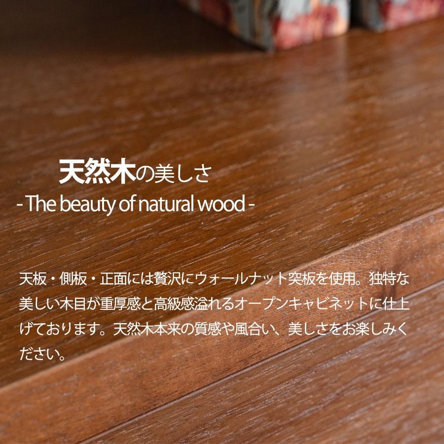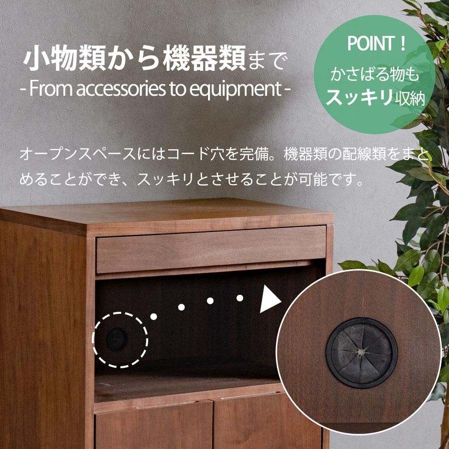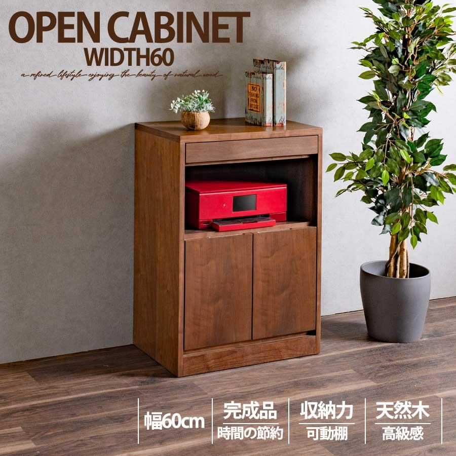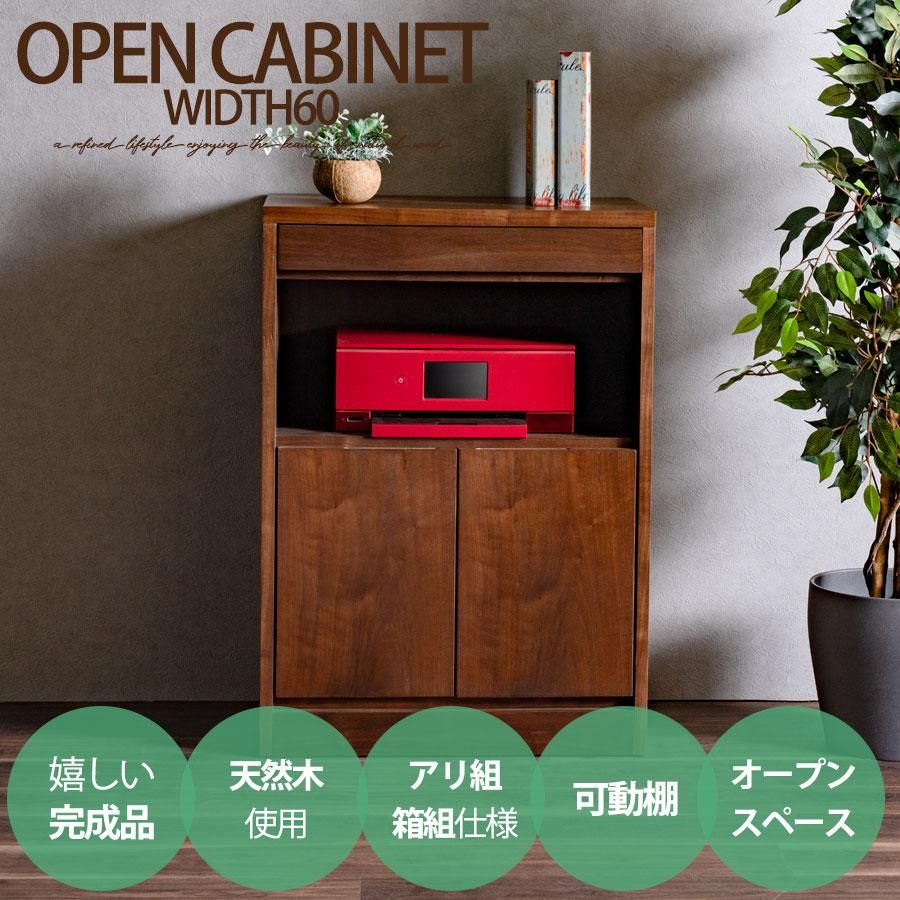 キャビネット 完成品 天然木 収納 可動棚 化粧仕上げ オープンスペース 60幅 引出し 扉 アリ組 箱組 北欧 モダン ブラウン ウォールナット突板