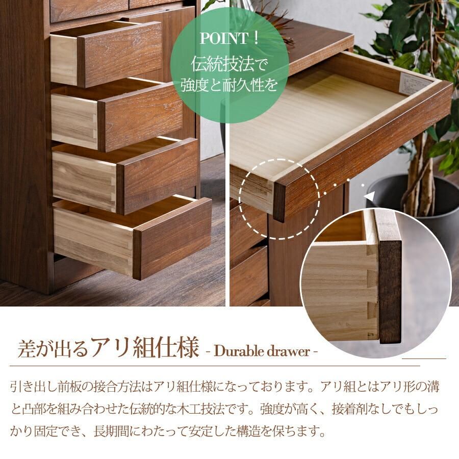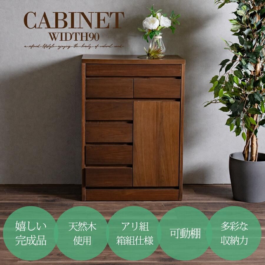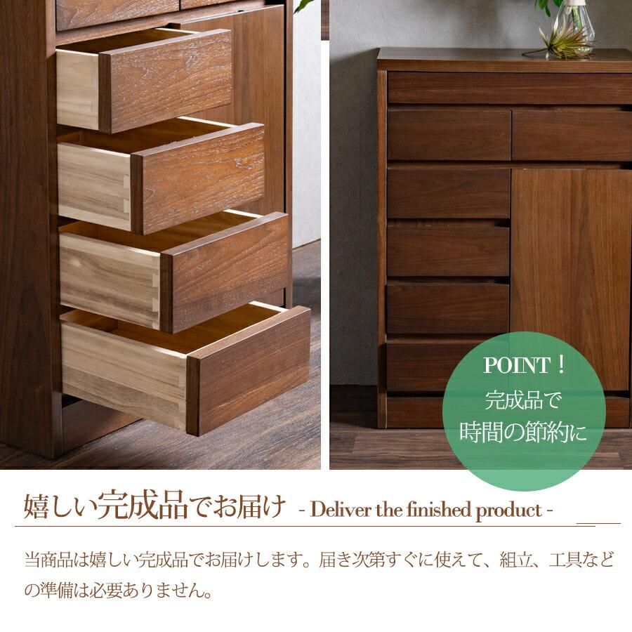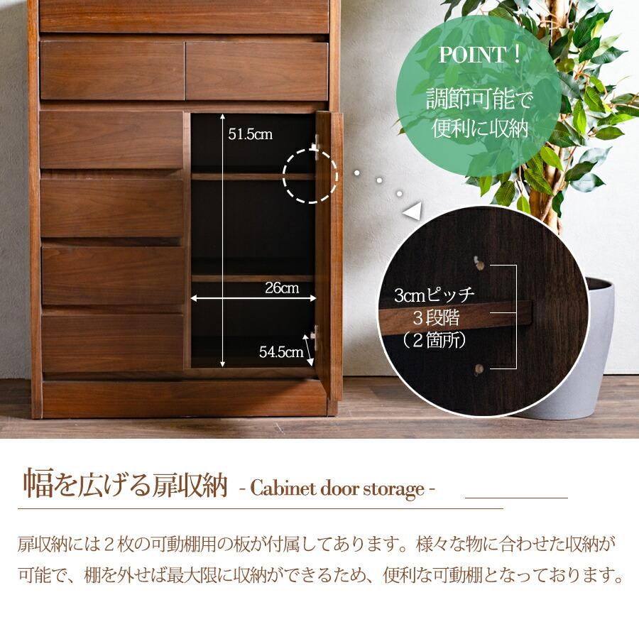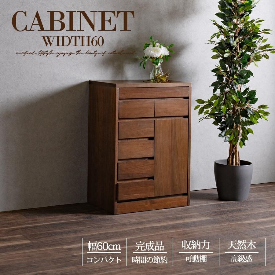 キャビネット 完成品 天然木 収納 可動棚 化粧仕上げ 60幅 幅60cm 引出し 扉 アリ組 箱組 北欧 モダン ブラウン ウォールナット突板 桐無垢材 インテリア